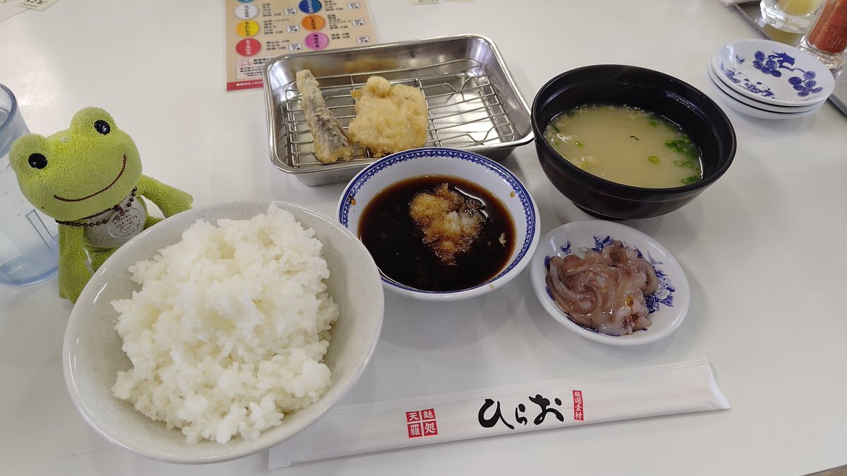 総じて天ぷらは美味しくて追加しようか迷ったくらいなんだけど、天つゆが口に合わなかった……。天つゆにも九州特有の甘い醤油が使われているとは! でも塩もめちゃくちゃ天麩羅に合うからシンプルスタイルで #日本列島2往復半の旅 x.com/a19911/status/…