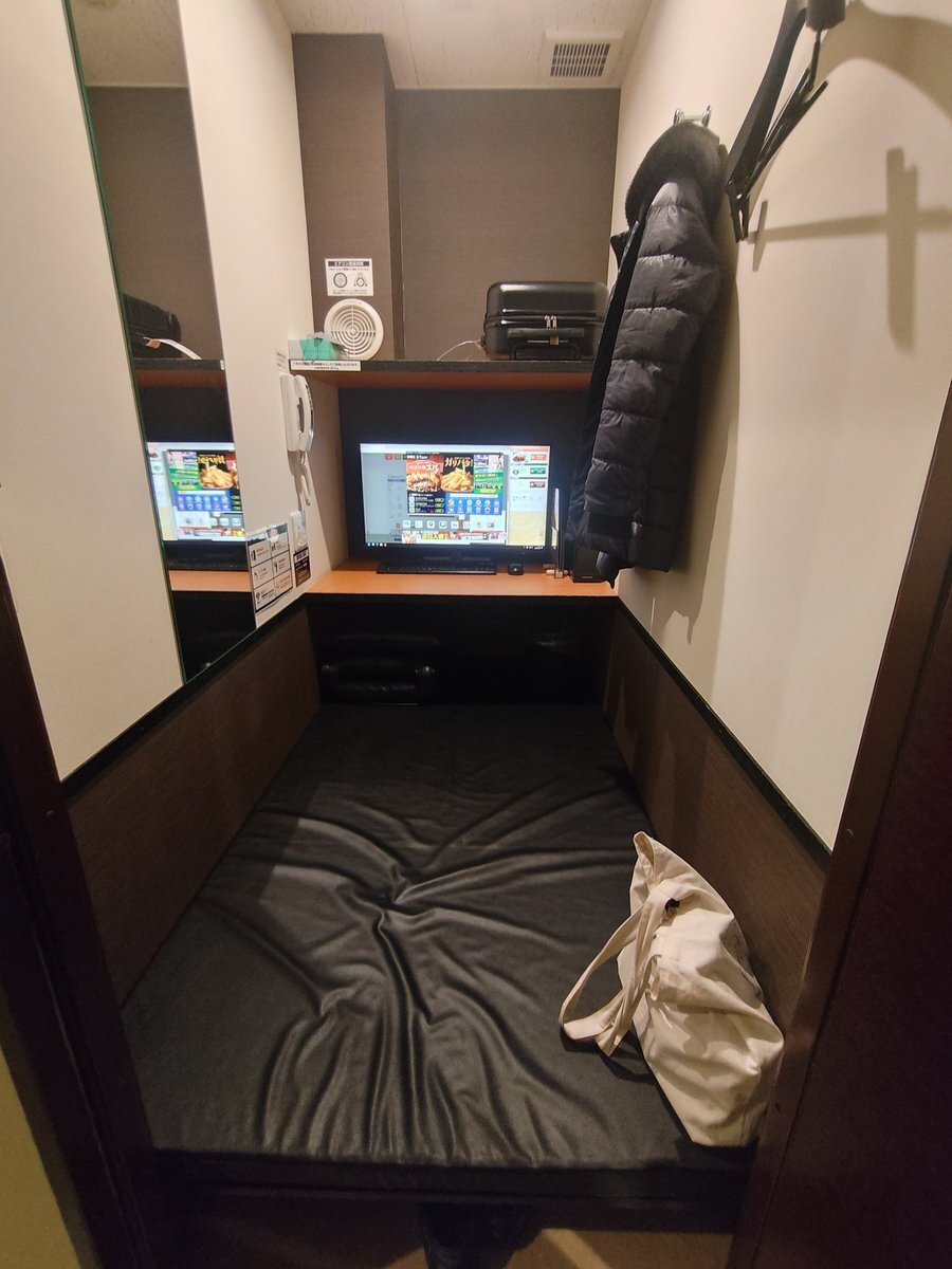 1日目の宿は、友達から激押しされてる快活クラブに初挑戦。というか、快活クラブ自体初めてのはず。 広さは…まあまあで鍵付き個室は確かにプライバシー確保されてるし、最近の都市部のビジホ値上がり具合を鑑みると選択肢としては確かにアリ…か? #日本列島2往復半の旅 pic.x.com/7mC70CEOjg