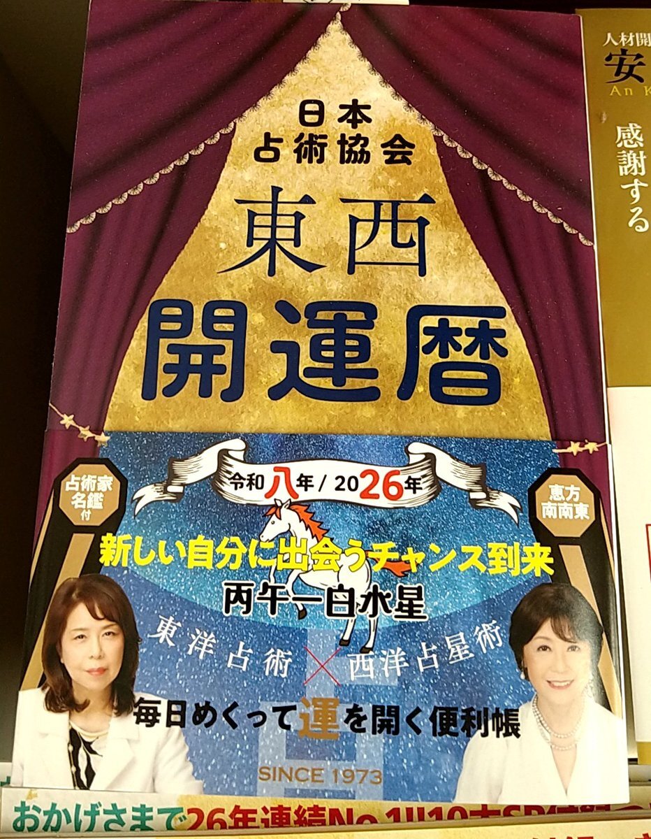 📘オススメ本📙 『令和八年/2026年 #東西開運暦』 編:#日本占術協会(@nihonsenjutsuk1) 東洋占術・西洋占星術・開運吉方位・姓名判断・四柱推命・手相・人相・タロットなど。 人気の執筆陣が総力をあげておくる決定版!! #紀伊國屋書店 新宿本店様にて展開中です🙇 #暦 #開運 #占い #ハート出版 pic.x.com/uq5rf8xL6P