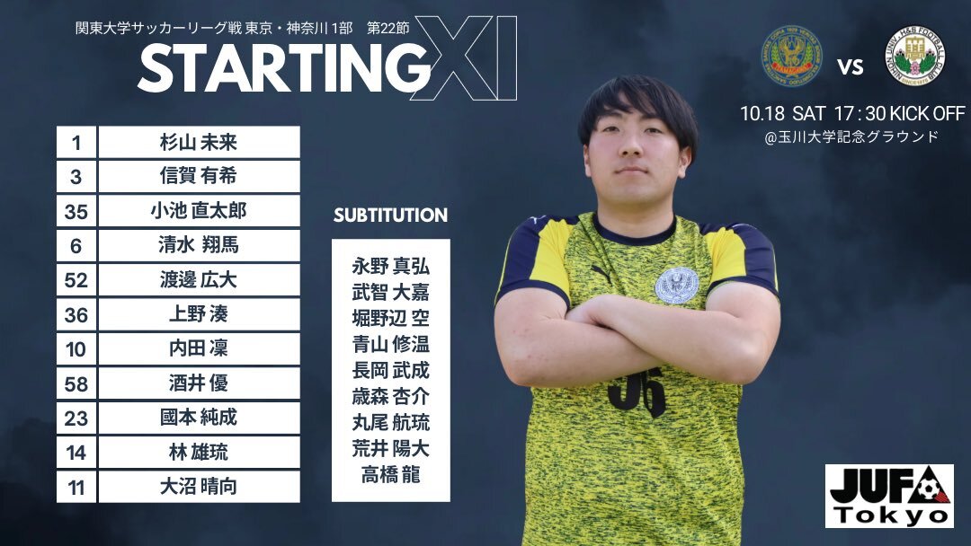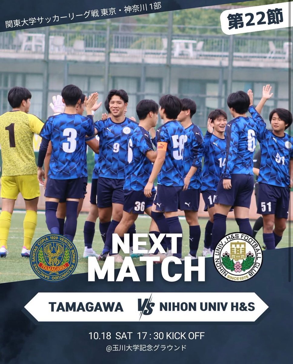 🔥試合情報🔥 【第3回関東大学サッカーリーグ戦 東京・神奈川 1部】 ◎第22節◎ 🗓10月18日(土) 17:30kick off 🆚 #日本大学文理学部 📍玉川大学記念グラウンド pic.x.com/K2WHsC3BJ7