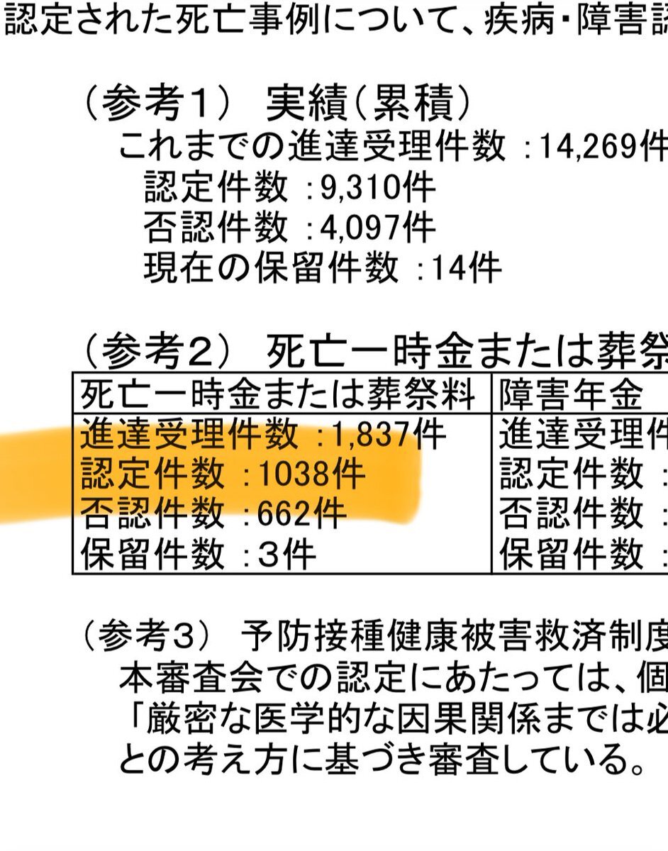 効果あるかないか分からないものを、日本国民に何度も何度も何度も何度も何度も何度も何度も何度も推奨してやってしまったのですね… 国が認定した コロナワクチンによる 死亡者数1,038名。 もういい加減に認めて 救済してください。 mhlw.go.jp/content/109000… x.com/jinkouzouka_jp…