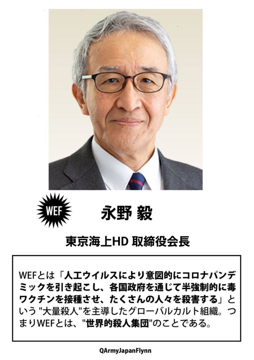 ⚠️危険⚠️ 拡散希望します❗️ 189. 永野毅 (東京海上 HD 会長) ダボス会議 出席者 #WEF #世界経済フォーラム #ダボス会議 #人564 #薩人鬼 #全匹9除 #東京海上 #セイコーホールディングス #日本経済団体連合会 #東海旅客鉄道 #日本ユースリーダー協会 #慶應大学 #永野毅 #QAJF pic.x.com/WhFeS9YbYH