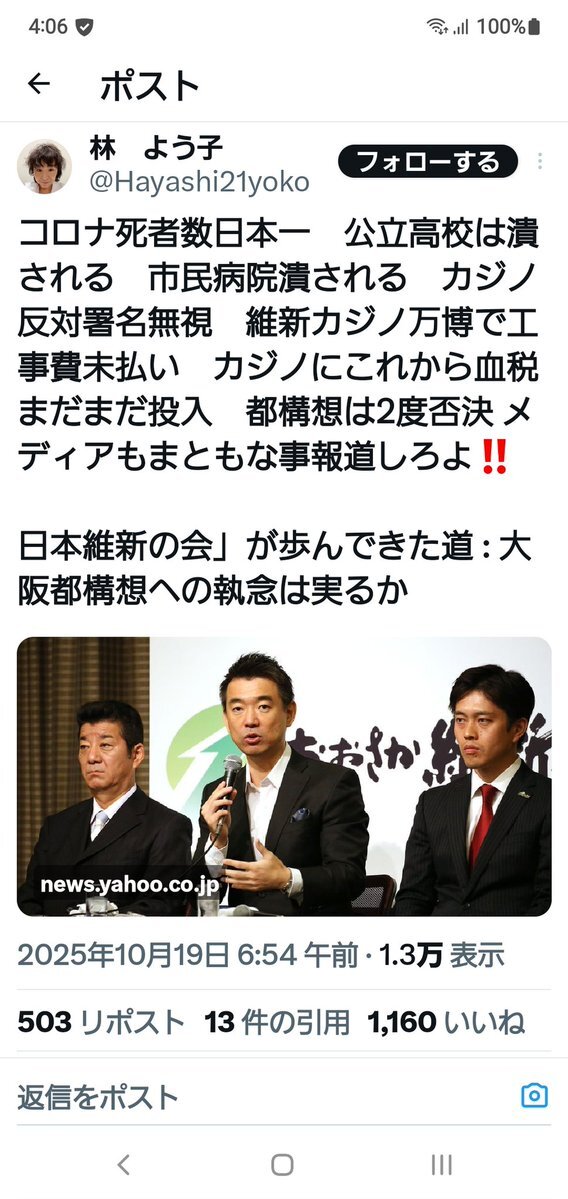 💩ハイハイ💩おつかれおつかれ🤣💩💩💩貴様らの嘘八百には負けるよ🤣🤣🤣 #吉村洋文は平気で嘘をつく #吉村洋文に騙されるな #吉村洋文は人間失格 #大阪維新の会は暴力団 #日本維新の会は犯罪者集団 #日本の犯罪者集団維新の会 #Japan #日本の国民の敵維新の会 #日本維新の会は日本国の敵 #拡散希望 pic.x.com/YDpmRrxibY x.com/hiroyoshimura/…