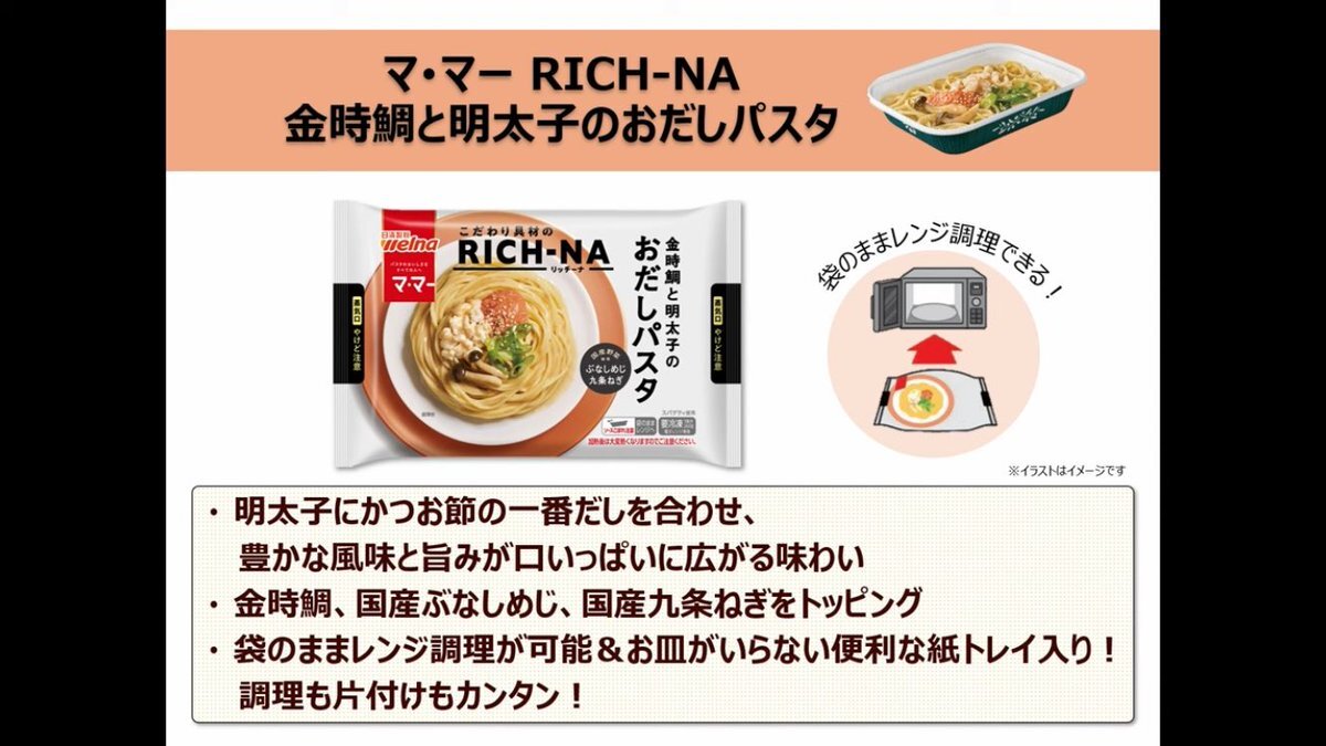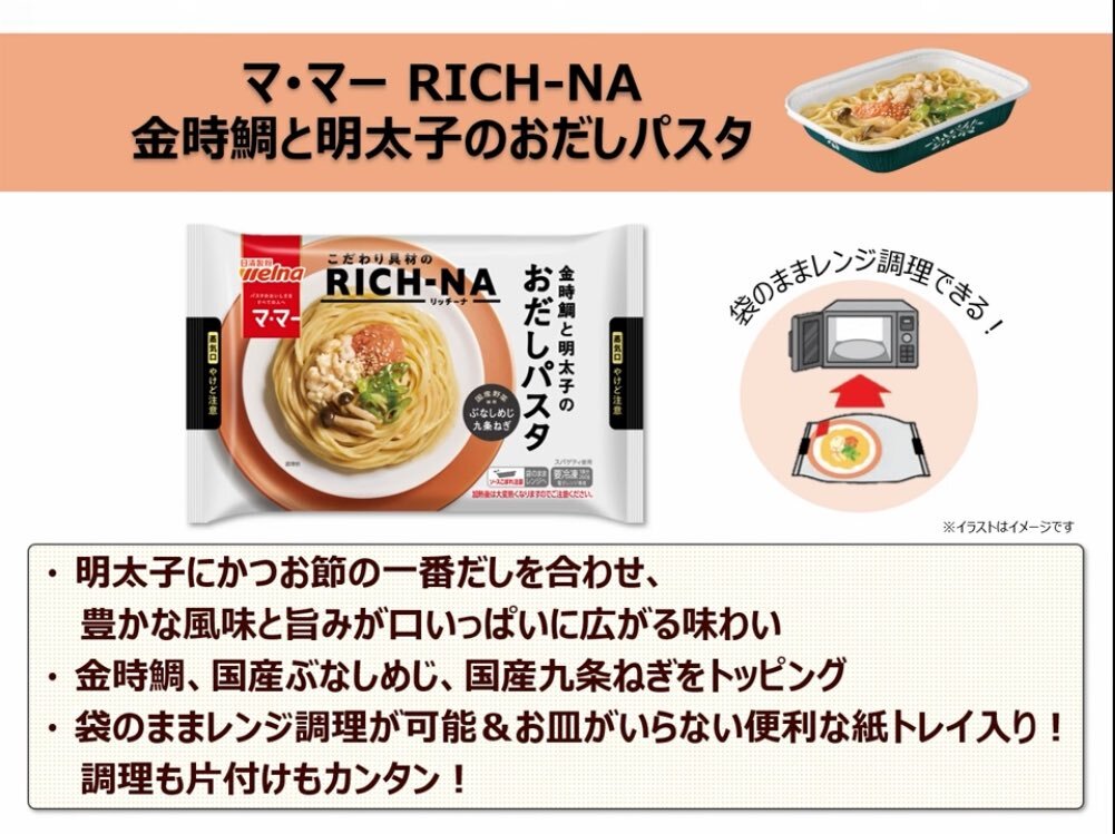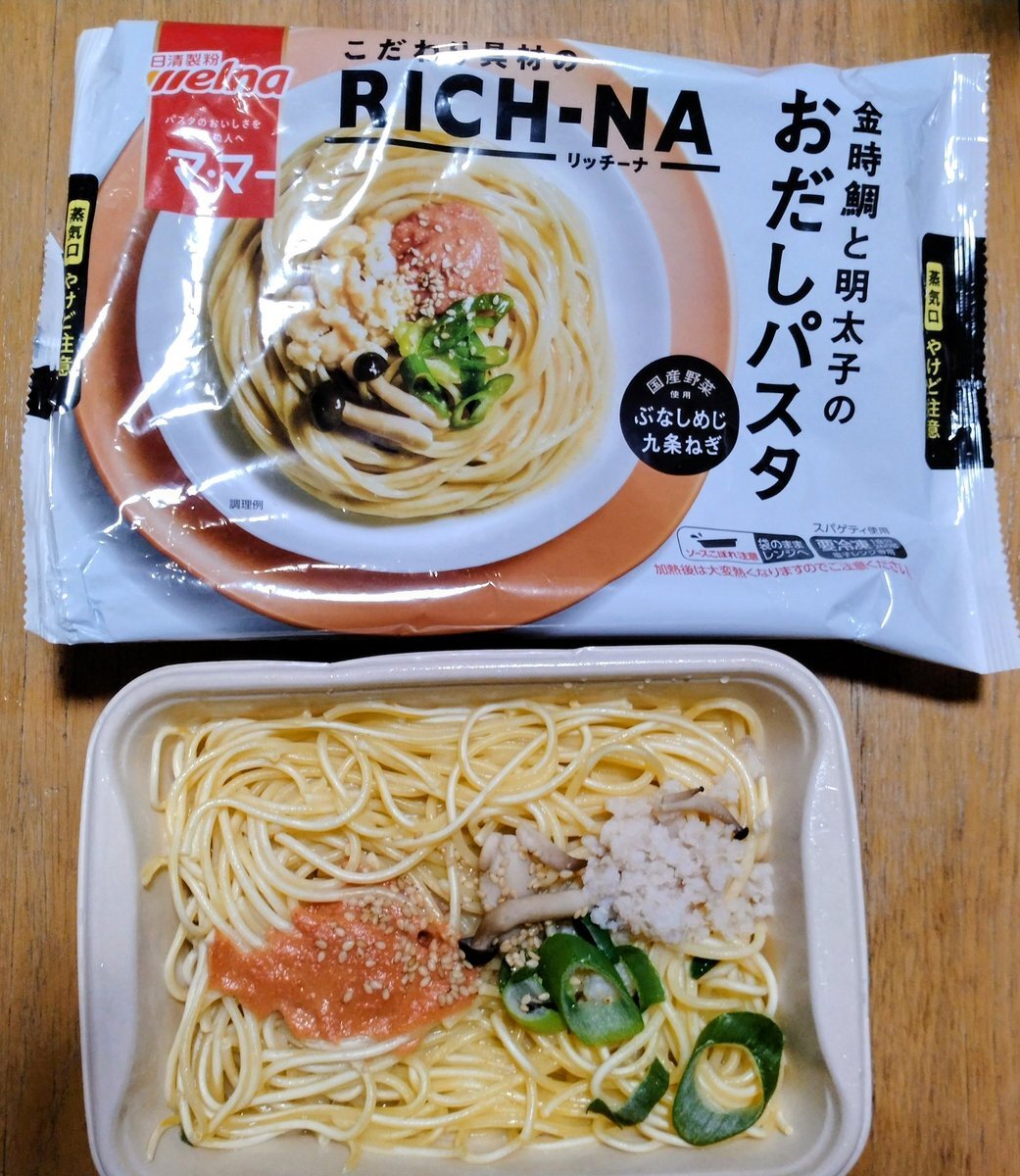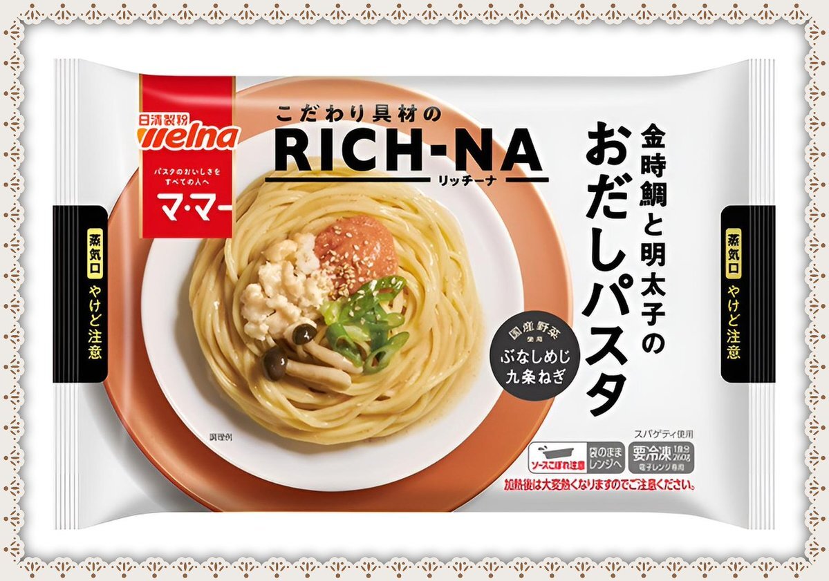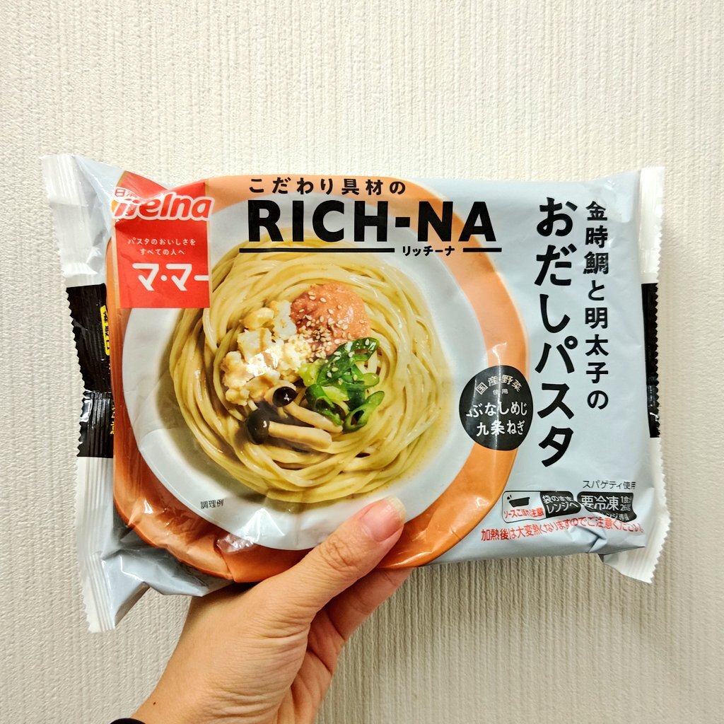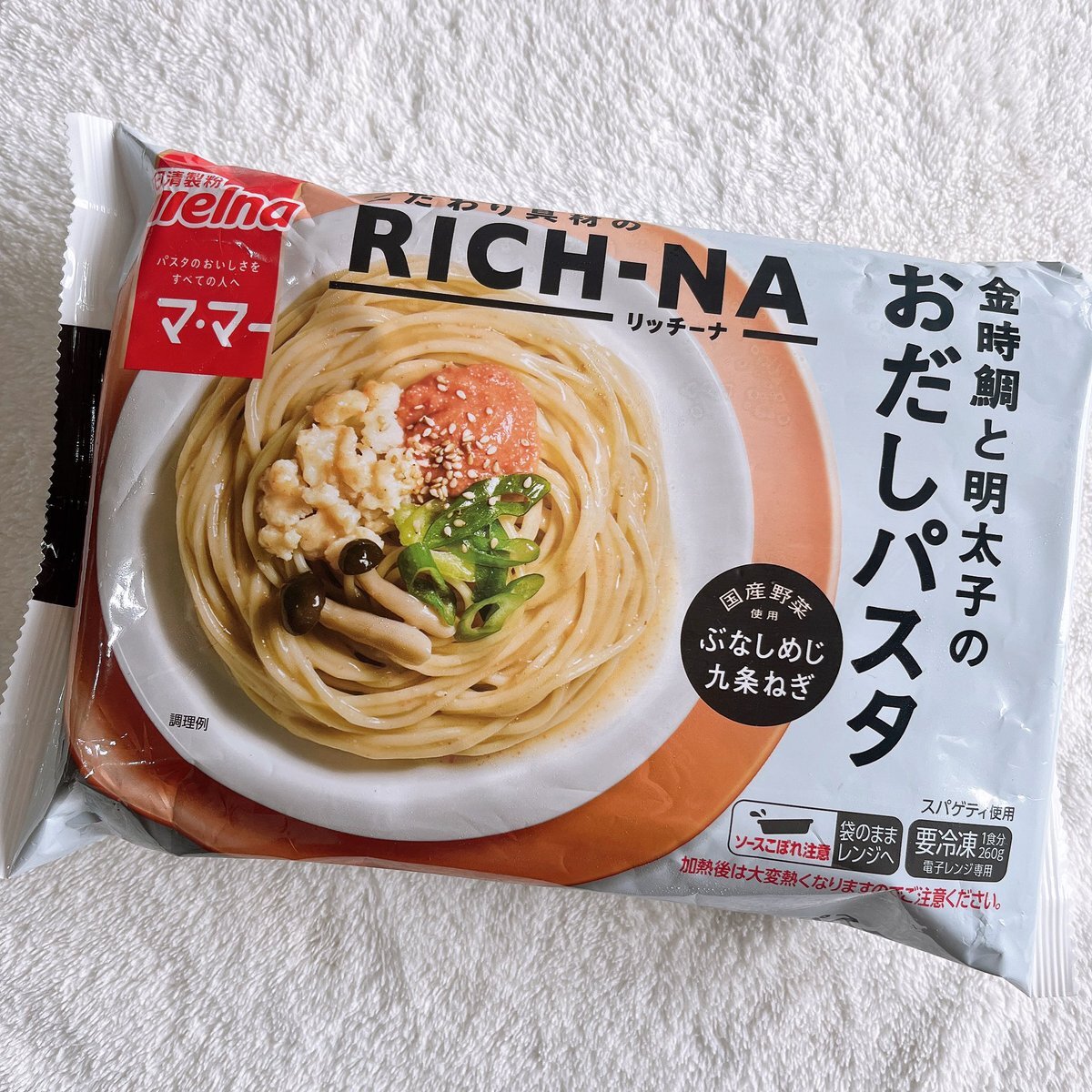 日清製粉ウェルナ マ・マー RICH-NA 金時鯛と明太子のおだしパスタ すぐに食べられるので便利✨ 美味しくて冷凍庫に常備しておきたい🍝 #プロモーション #日清製粉ウェルナから提供いただきました #RSPに参加しました #RSP110 #サンプル百貨店 #リッチーナ #RICHNA pic.x.com/rhNzkt7YPw