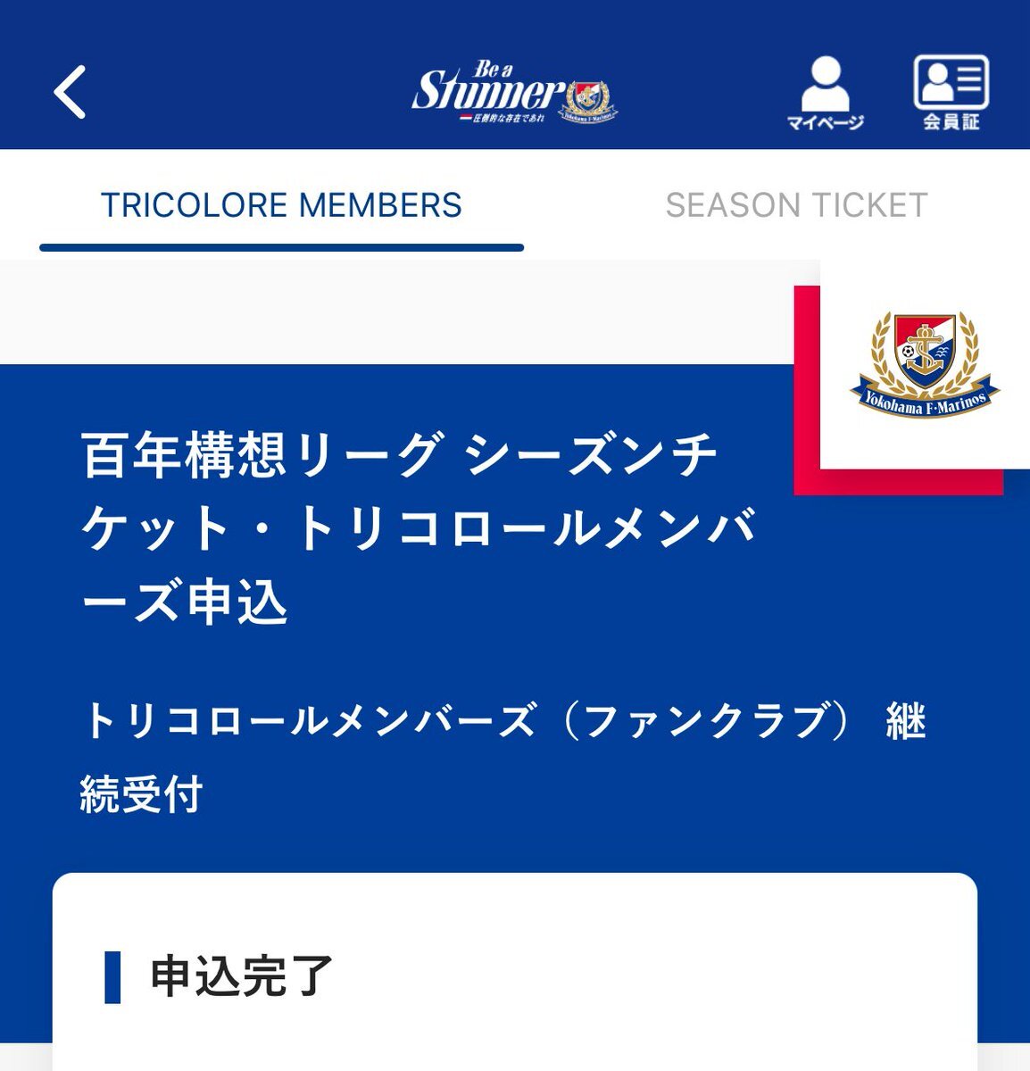 この度 #横浜Fマリノス #百年構想リーグ #トリコロールメンバーズ #継続入会 を申込みました! なぜかこれで3年連続😁、いや、年に一度くらい #日産スタジアム での試合が見たくなりますので😅 #fmarinos #早期入会キャンペーン pic.x.com/RKsusamYyf