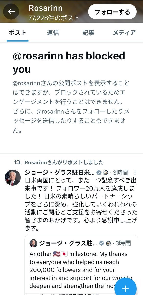 返信先:@kurisogenumm他1人米兵による不同意わいせつ容疑で 「コメント差し控える」と言う 小泉進次郎防衛相を 覚醒してると投稿してる このアカウント(@rosarinn) 存在も知らんかったけど ブロックされてた まぁ別にいいけど #日米地位協定改定 #誰がなっても自民党は悪党 #ヤバすぎる緊急事態条項 x.com/empathyjojo/st… pic.x.com/3MFtZNxE8D