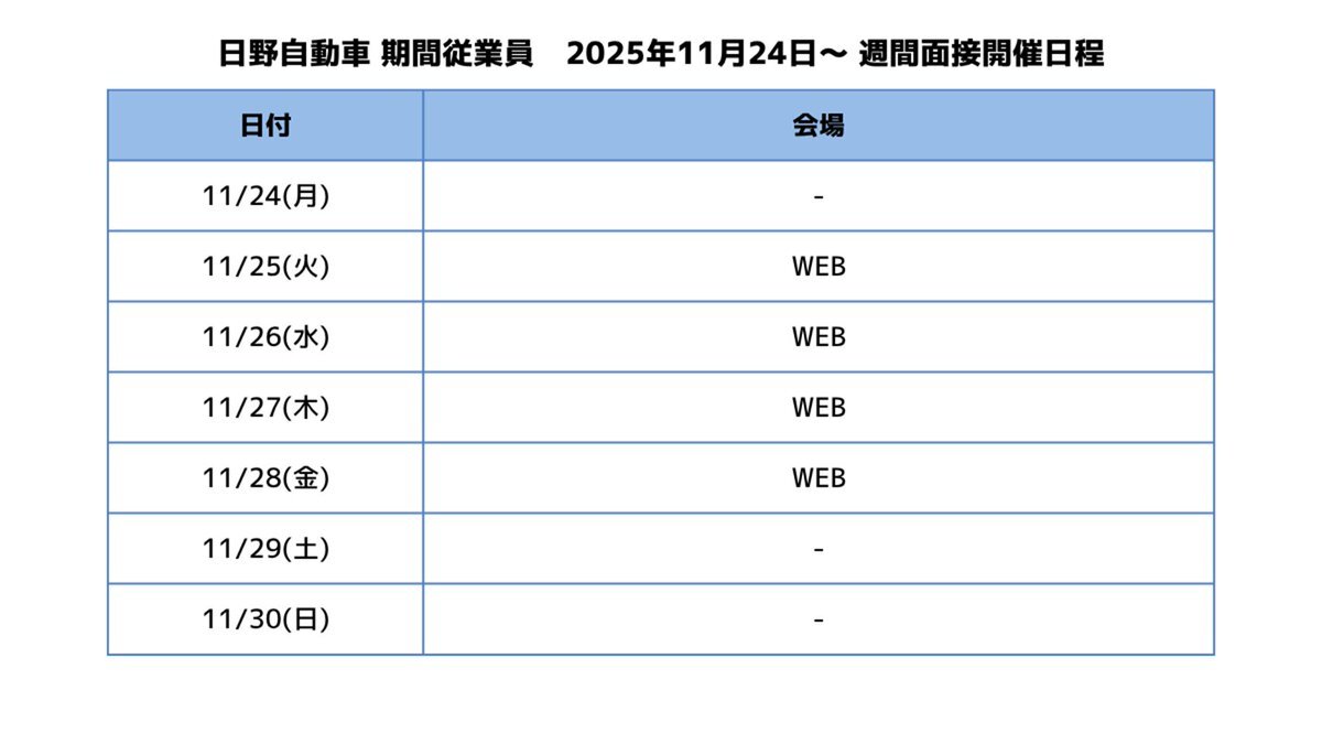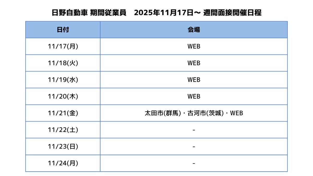 こんにちは!#日野自動車 ものづくり支援部 採用担当です! 今週の 面接日程のご連絡です! 今週はWEBのみの面接実施になっております! 詳細は 求人サイトまで👇 URL:bit.ly/49vPoRb pic.x.com/iYpxJtgGNg