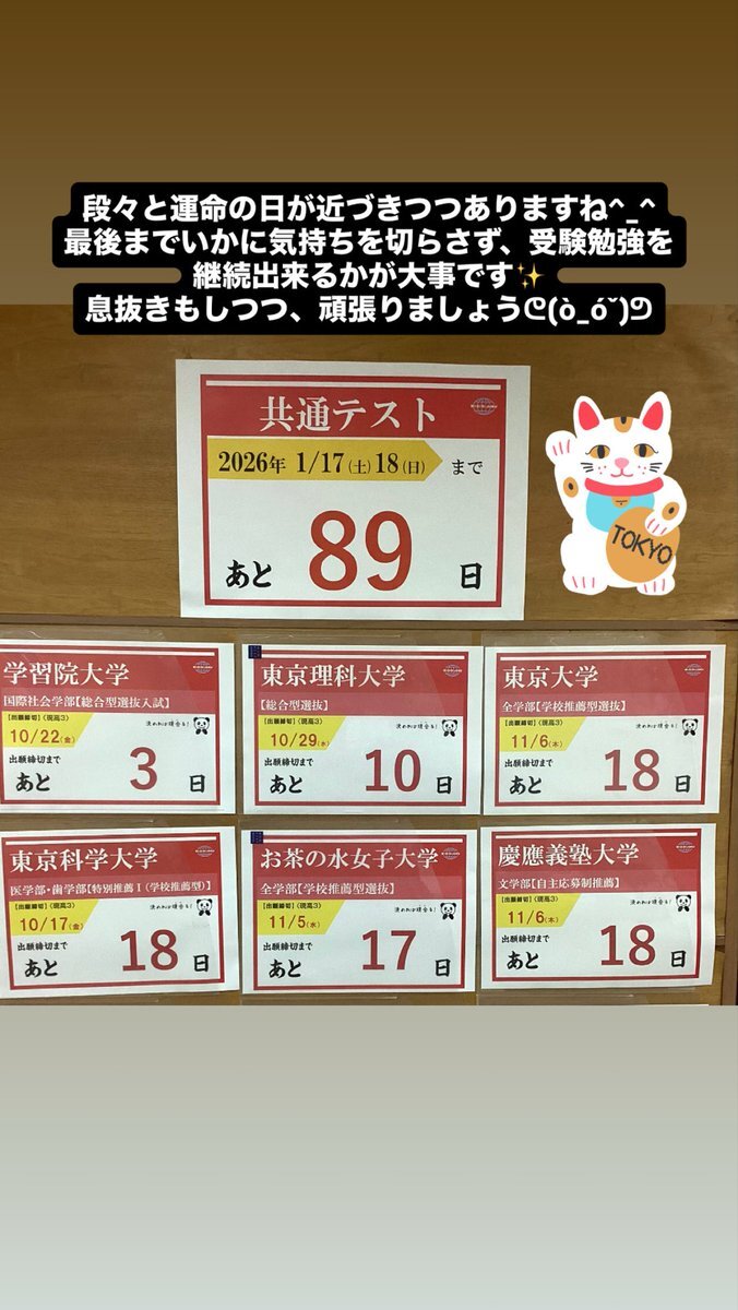 気温も涼しくなり、順調に共通テストのシーズンに近づいて来ましたね!「まだあと109日もあるから」と言いたい所ですが、 あと109日しかありません‼️ 焦りは禁物ですが、危機感をもつ事も重要ですよ😄 #早稲田塾 #両立 #早稲田塾吉祥寺校 pic.x.com/7A6Zd9lTKn