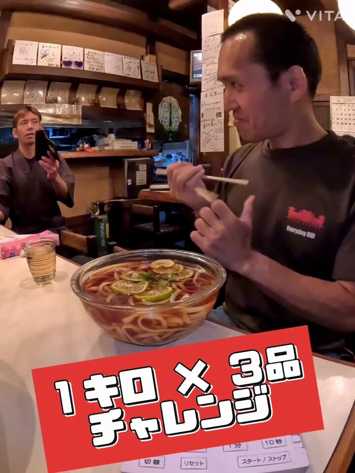 3品目:かき揚げそば 1kgすだちうどん:40秒 1kgカツ丼:1分55秒 1kgかき揚げそば:6分51秒 3品トータル⏳️9分26秒 このチャレンジの最難関、かき揚げは強敵だった 厚みが2〜3cmある極厚かき揚げは2戦後の嚥下力では超強敵 悔しいぜ😂 #早食い #フードファイト pic.x.com/OOwMrV8VTG x.com/Nobuta73/statu…