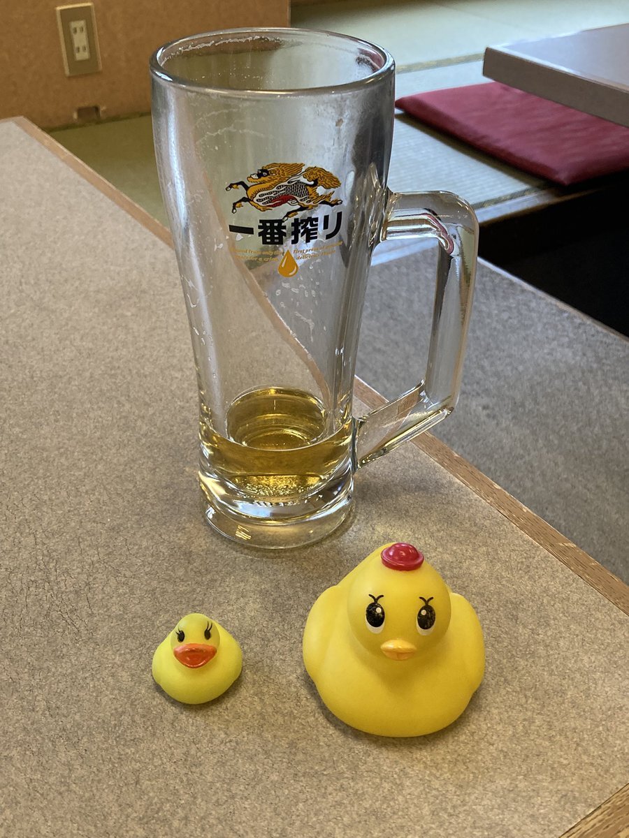 隊長が忙しい業務の中子アヒル🐣君の所に来てくれました。 進化する故郷を誇らしく思う子アヒル🐣君。 もっと熱いサウナにも耐えなくちゃと、体力アップに豚丼も食べちゃいました。 やっぱり何食べても旨い😋 #旭川高砂台万葉の湯 pic.x.com/v71lXCdCcu