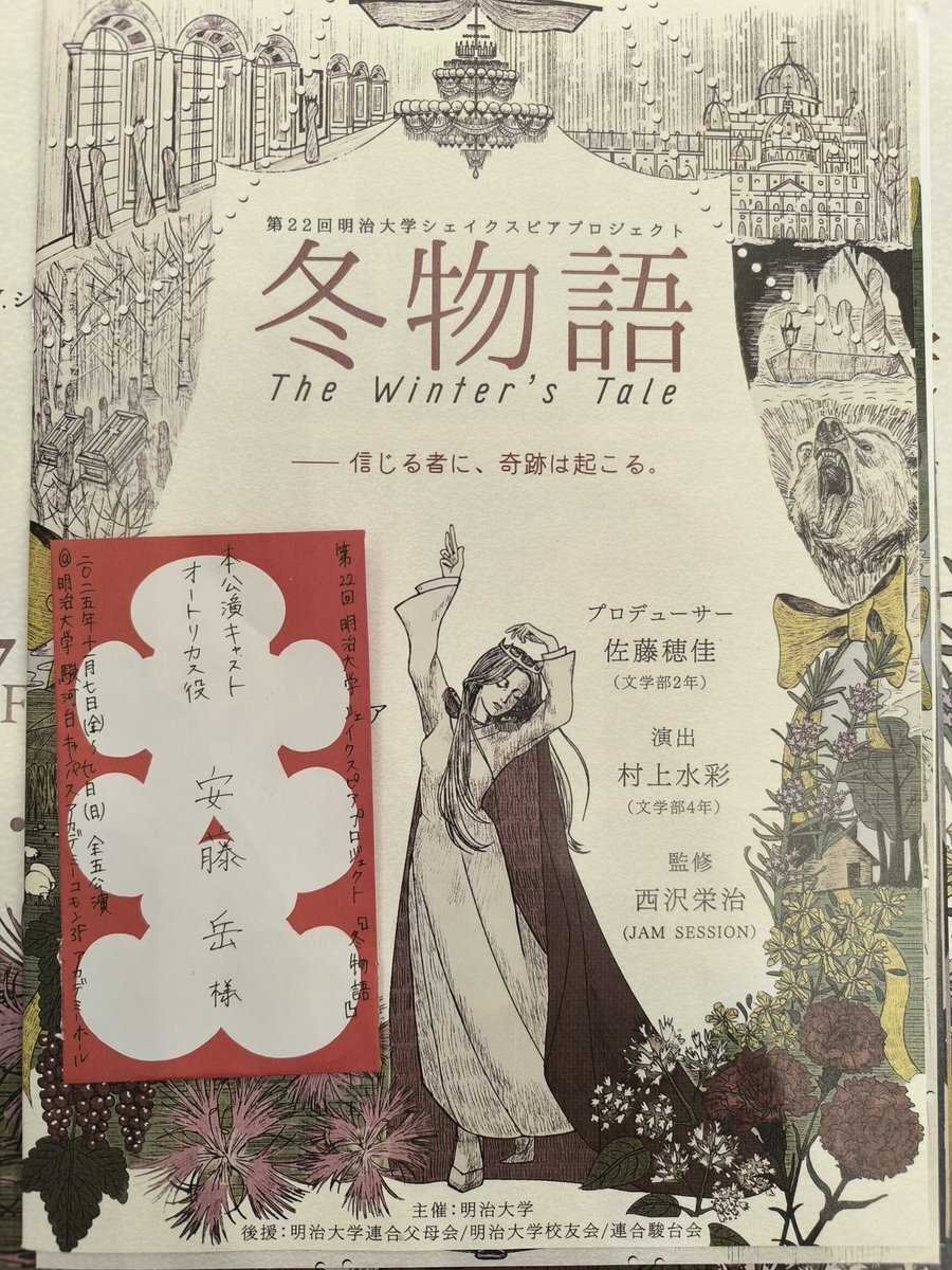 #明治大学シェイクスピアプロジェクト #冬物語 見に行ってきました!! とても素敵な舞台で幸せなひと時でした……!!お芝居の素敵さもさることながら演出、構成の素晴らしさも相まって鳥肌モノで引き込まれました 友人の舞台のお芝居を見るのは小学生ぶりだったのですが、相変わらず最高でした✨ pic.x.com/xLEXzcsiDk