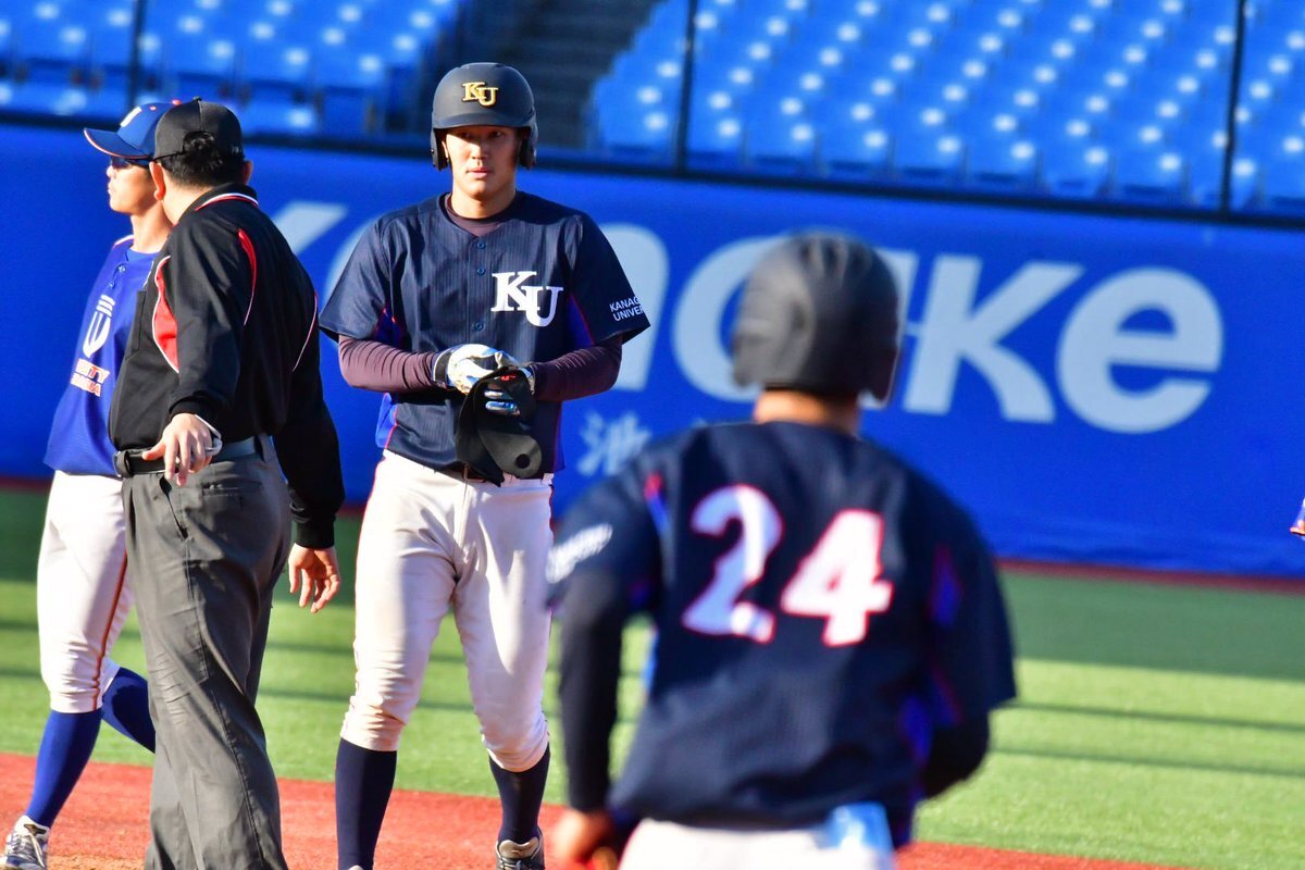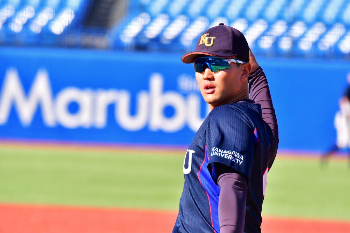 [11/15 明治神宮大会] 神奈川大 #8 金子京介(盛岡大学附属高) シフトも引かれたが3安打放つさすがの打撃を見せた!(打球が速いこと…) 良い状態で大会を迎えられたようだ! #明治神宮大会 #神奈川大学 #RakutenEagles #金子京介 pic.x.com/mk3ds02YDc