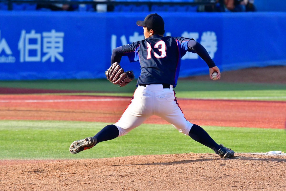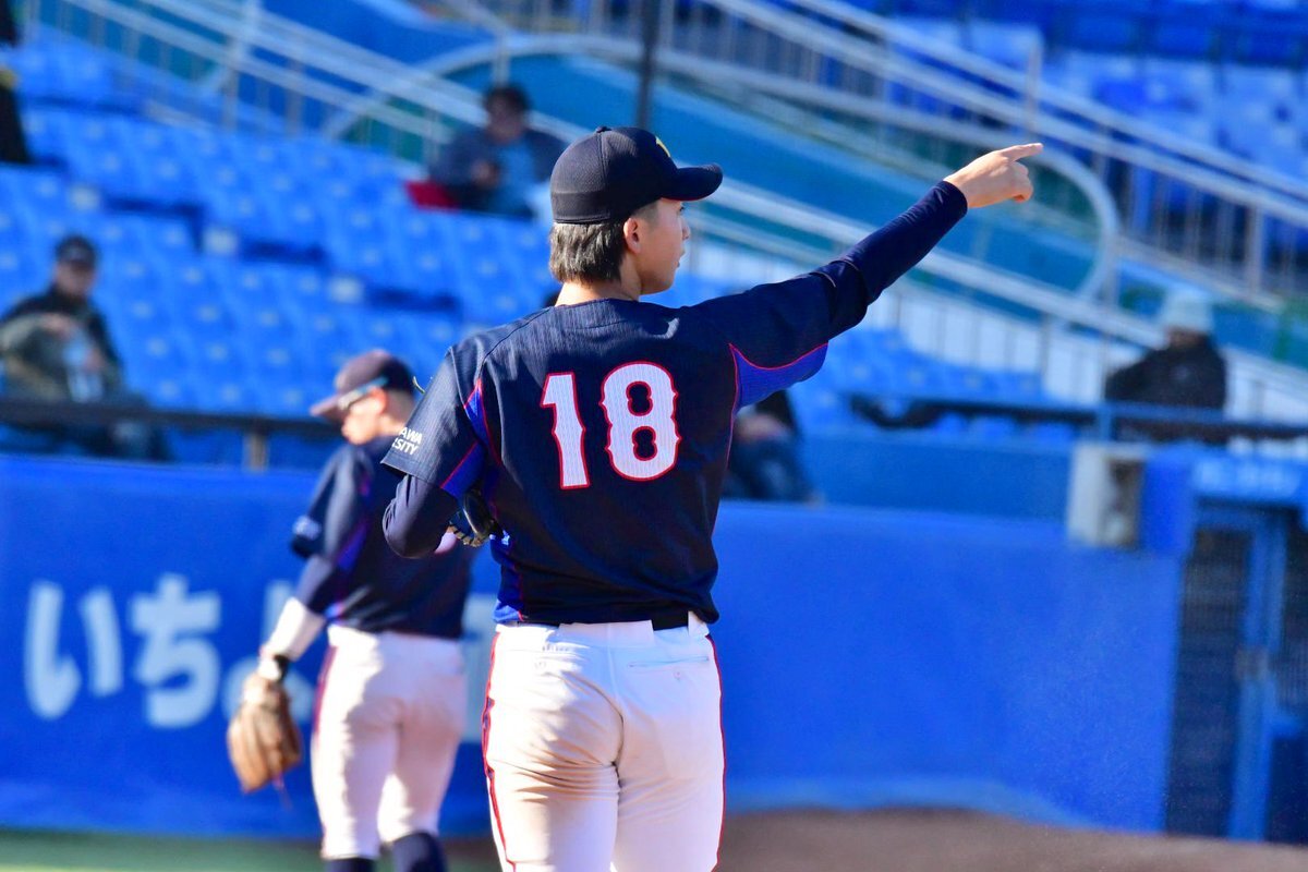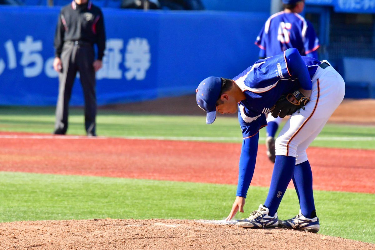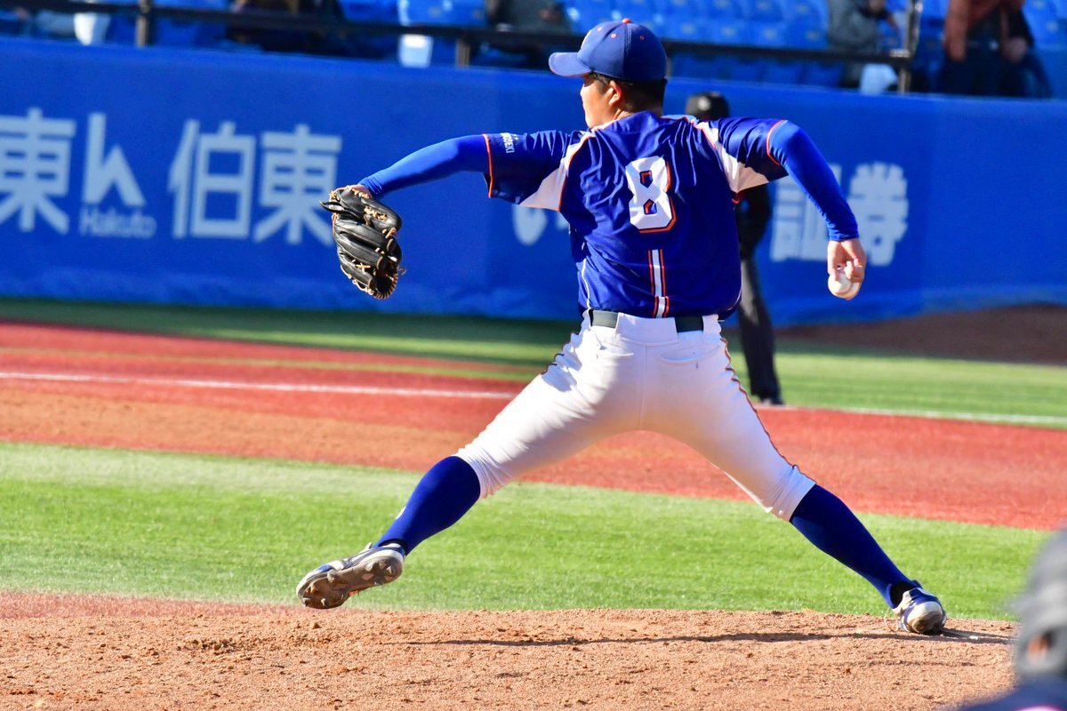 [11/15 明治神宮大会] 神奈川大 #18 松平快聖(市原中央高) 不安定な立ち上がりもなんとか最小失点に抑えて4回まで投げた 打席でもタイムリー二塁打を放った! やはり彼が神大のエースだね! #明治神宮大会 #神奈川大学 pic.x.com/kiZAfZgZVU