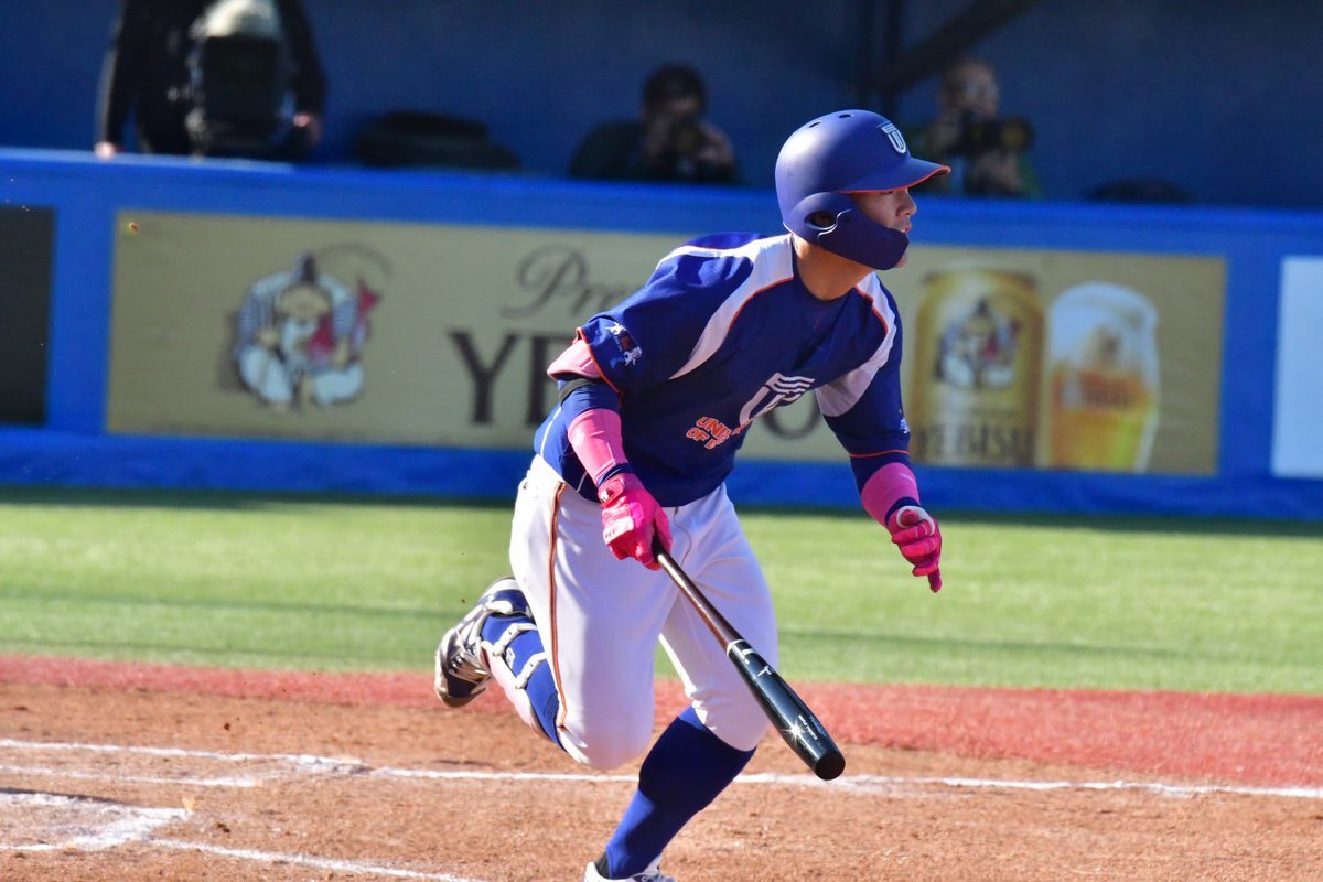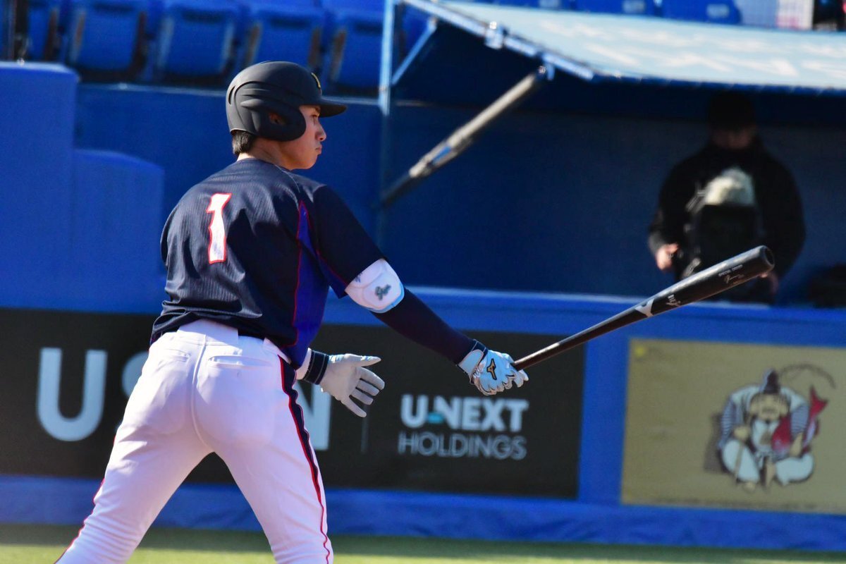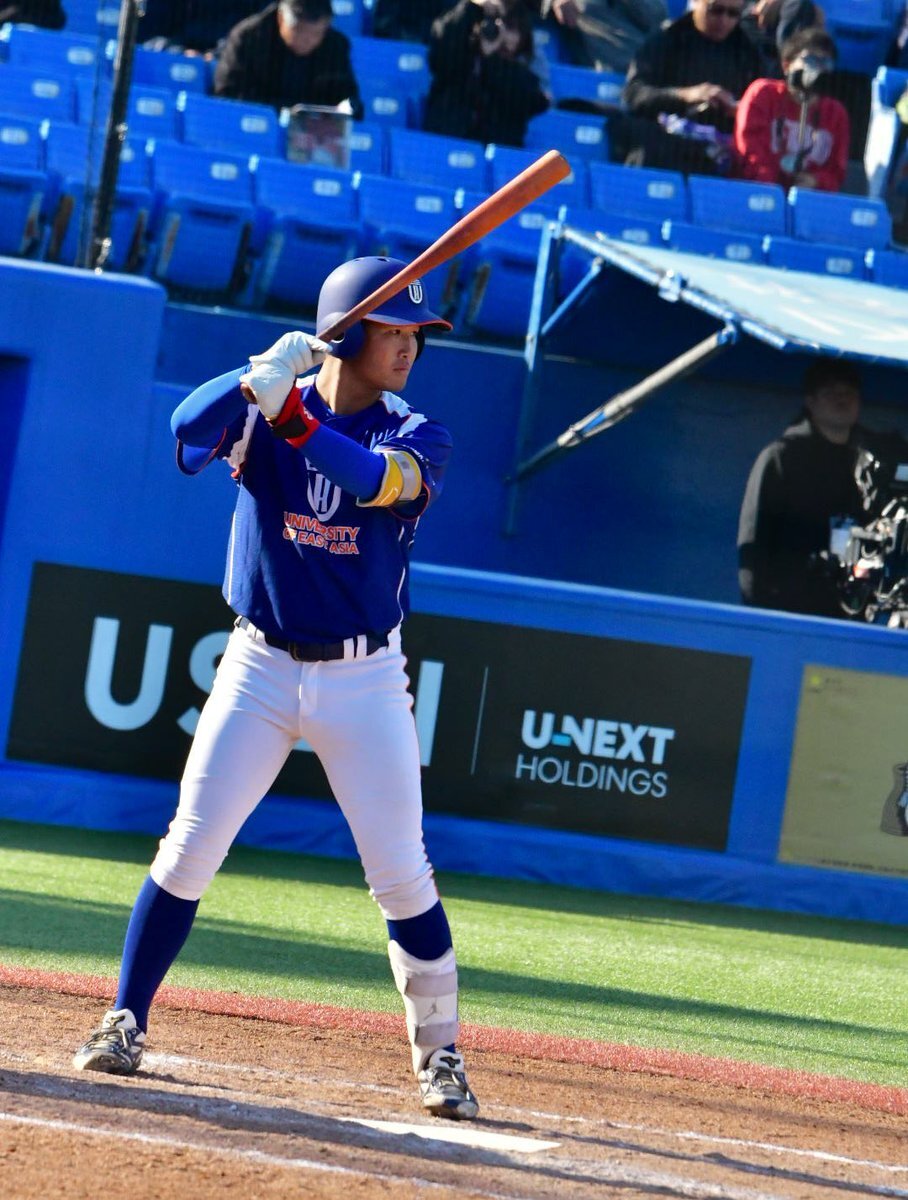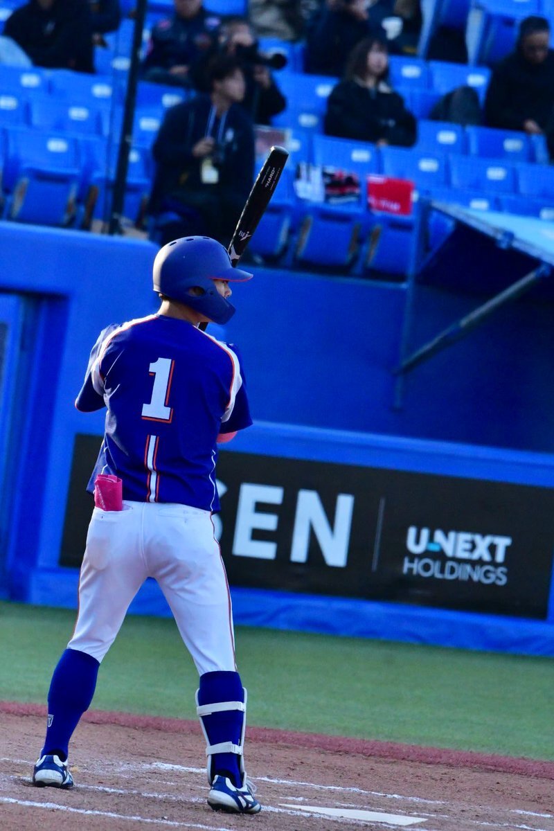 [11/15 明治神宮大会] 東亜大 #1 庄本勇次(高朋高) チーム唯一の得点は彼の先制タイムリーだった 春に続いて打つ姿を見られた! #明治神宮大会 #東亜大学 pic.x.com/gWQc2D3k4n