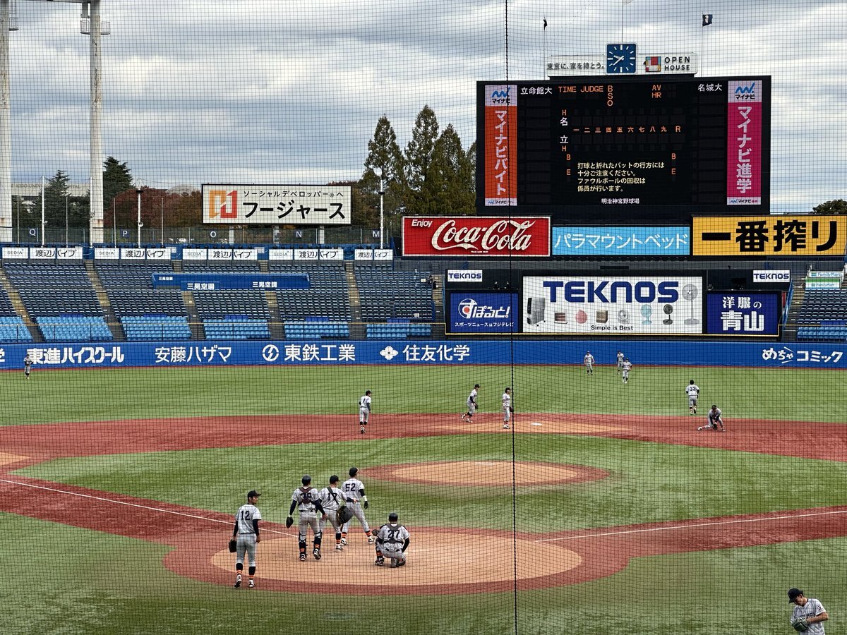 【2025.11.18明治神宮大会準決勝】 東京遠征も残すところあと2日!! 今日は大学の部準決勝を2試合観戦!! 青山田端が出ることに期待しております!! めっちゃ寒い!! 明日も寒そうです、、、 #2025明治神宮大会 #大学の部 #明治神宮球場 #名城大 #立命館大 pic.x.com/Jn1YSwAkOb