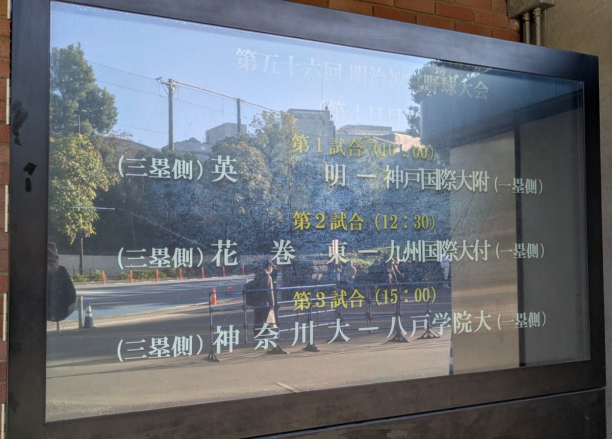 【2025.11.16明治神宮大会2回戦】 今日は大学の部まで4試合観戦予定!! 相手は強豪山梨学院、頑張れ九国ー!! #2025明治神宮大会 #高校の部 #大学の部 #九州国際大付 #明治神宮球場 #ハイライト pic.x.com/GNJcbigNgo