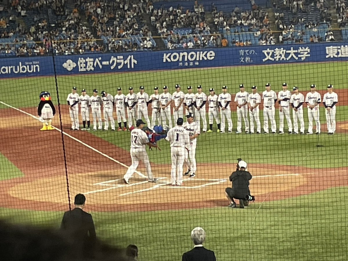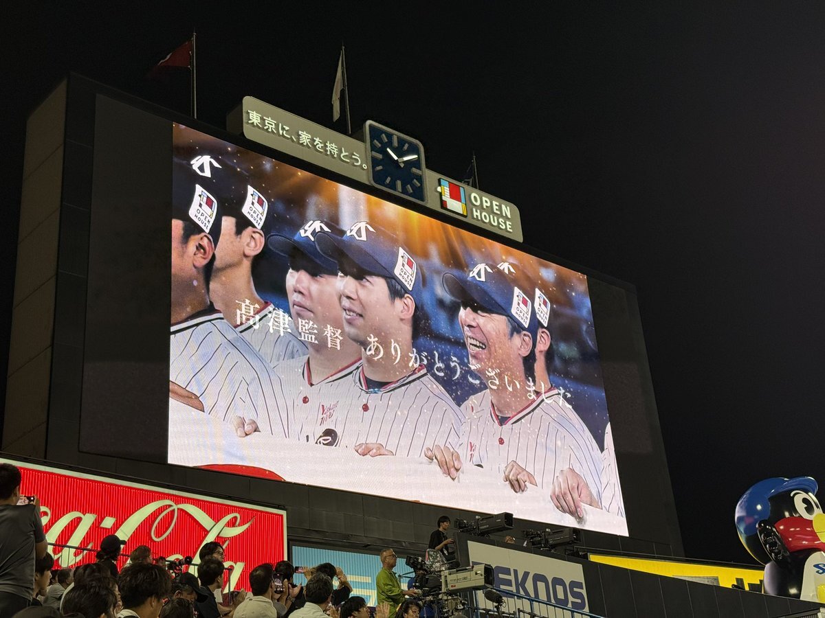 9月28日 神宮球場 スワローズ対ジャイアンツ 神宮球場最終戦、12回を戦って4対4の引分け。ホーム最終戦のセレモニーで退任する高津監督のスピーチがとても良かったです。お疲れ様でした😃⚾ #ジャイアンツ #巨人 #明治神宮野球場 #東京ヤクルトスワローズ pic.x.com/tShmbkYCxM