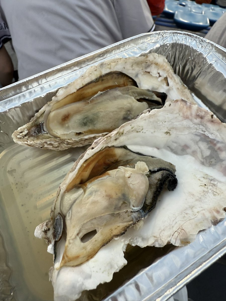 牡蠣の浜焼き #明治神宮野球場 外野 だんまや水産 価格:750円 おすすめ度:★★★☆☆ 東京の一等地の野外でこんなものが食べられるなんて🦪 流石に味は地方球場には及ばないし、食べた時のジュワッとする食感もなくて残念でした😭 ただ味は程よい塩味で美味しかったです #神宮グルメ #球場メシ pic.x.com/4jesQXlaQg