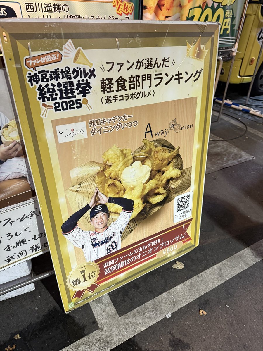 オニオンブロッサム #明治神宮野球場 ダイニングいつつ 価格:800円 おすすめ度:★★★★★おすすめ🧅 武岡選手のご実家の淡路島の玉ねぎを使用、ファンが選んだ軽食部門堂々一位のこちら🥇 本当に美味しかった! 玉ねぎの甘さとサクッと軽い衣が合わさって箸が止まりませんでした pic.x.com/Hs7w7J20LX