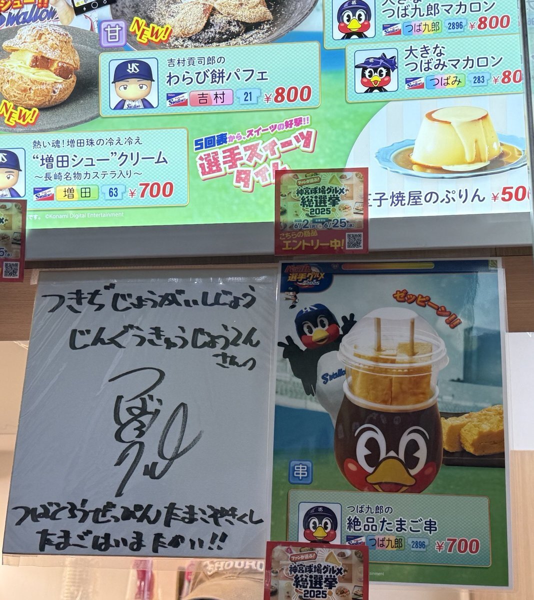 野球観戦⚾️ 神宮飯🍴お値段はお高めではあるけど、どれもおいしい! つば九郎さんの直筆サイン😍つば九郎に溢れてた🥰 2025.06 #つば九郎 #つばみ #あだち充 #コラボDAY #明治神宮野球場 #神宮 #野球観戦 #東京ヤクルトスワローズ #ヤクルト #スワローズ #ソフトバンクホークス #推し活 pic.x.com/5fBiRNg7GL