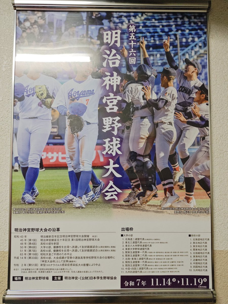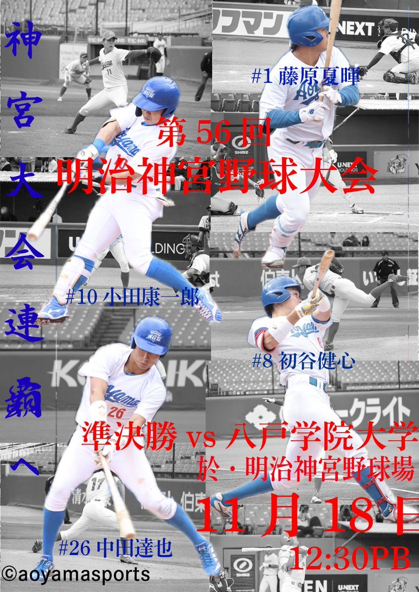 【第56回 明治神宮野球大会】 🏟11/18(火)12:30 明治神宮野球場 ⚔️準決勝 準決勝の対戦相手は東北三連盟代表・八戸学院大学です⚡️ 決勝進出を懸けた負けられない一戦に臨みます💥💥 青学大ナインへの熱い応援をよろしくお願いします📣🔥 #agubbc #青学 #明治神宮野球大会 pic.x.com/hnD4ExJvG7