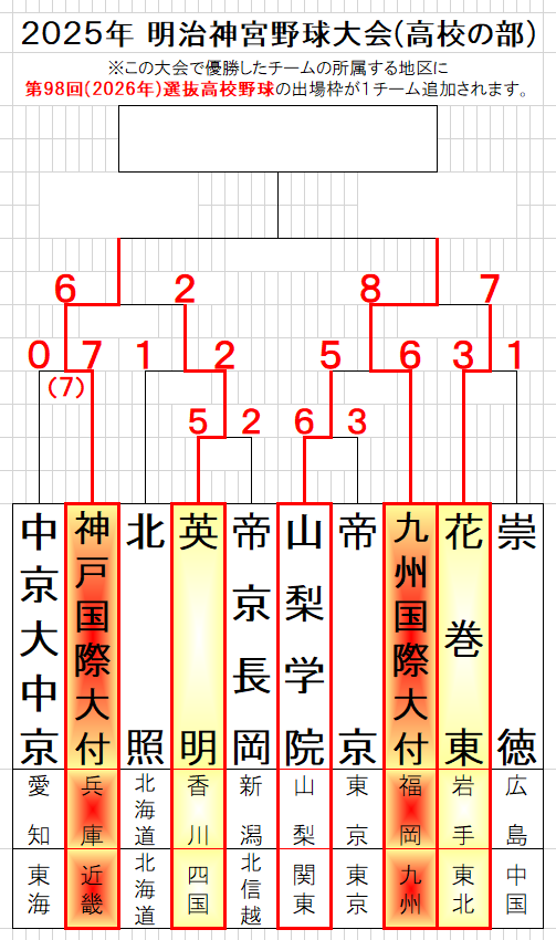 #高校野球⚾#センバツ #神宮大会 #2025年11月17日 #準決勝 #神戸国際大付(兵庫・近畿) 6-2 #英明(香川・四国) #九州国際大付(福岡・九州) 8-7 #花巻東(岩手・東北) #明治神宮野球大会 #神宮枠 #第56回明治神宮野球大会 #選抜高等学校野球大会 #第98回選抜高等学校野球大会 pic.x.com/OaEAVJP77X