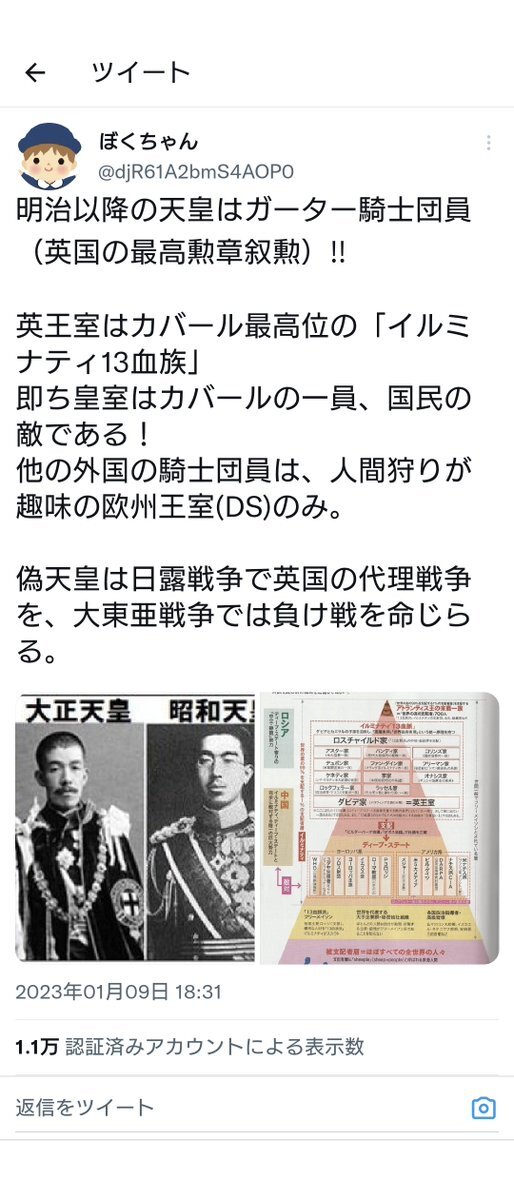 返信先:@takaichi_sanae天皇は偽物・象徴偽物 千田寛仁が証言 江戸時代幕末に孝明天皇と睦仁親王を暗殺した犯人は伊藤博文、岩倉具視、大久保利通らの長州テロリストと確認している。 明治天皇すり替えは事実で、現在の島津徳仁も大室家(李成桂)の系譜で偽天皇と確認している。 #公式政府徳川江戸幕府 #明治維新の嘘 pic.x.com/Xo8FIeaOMw
