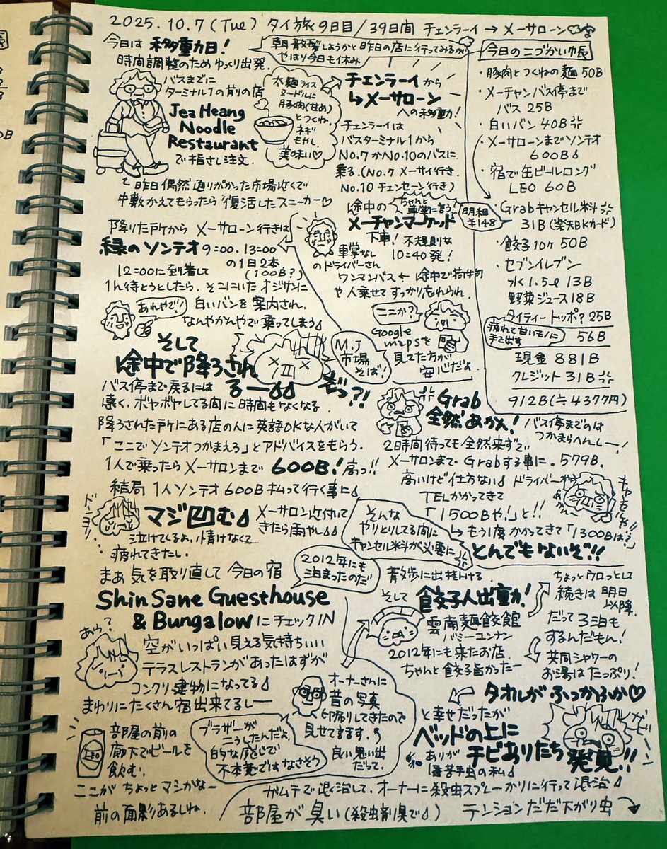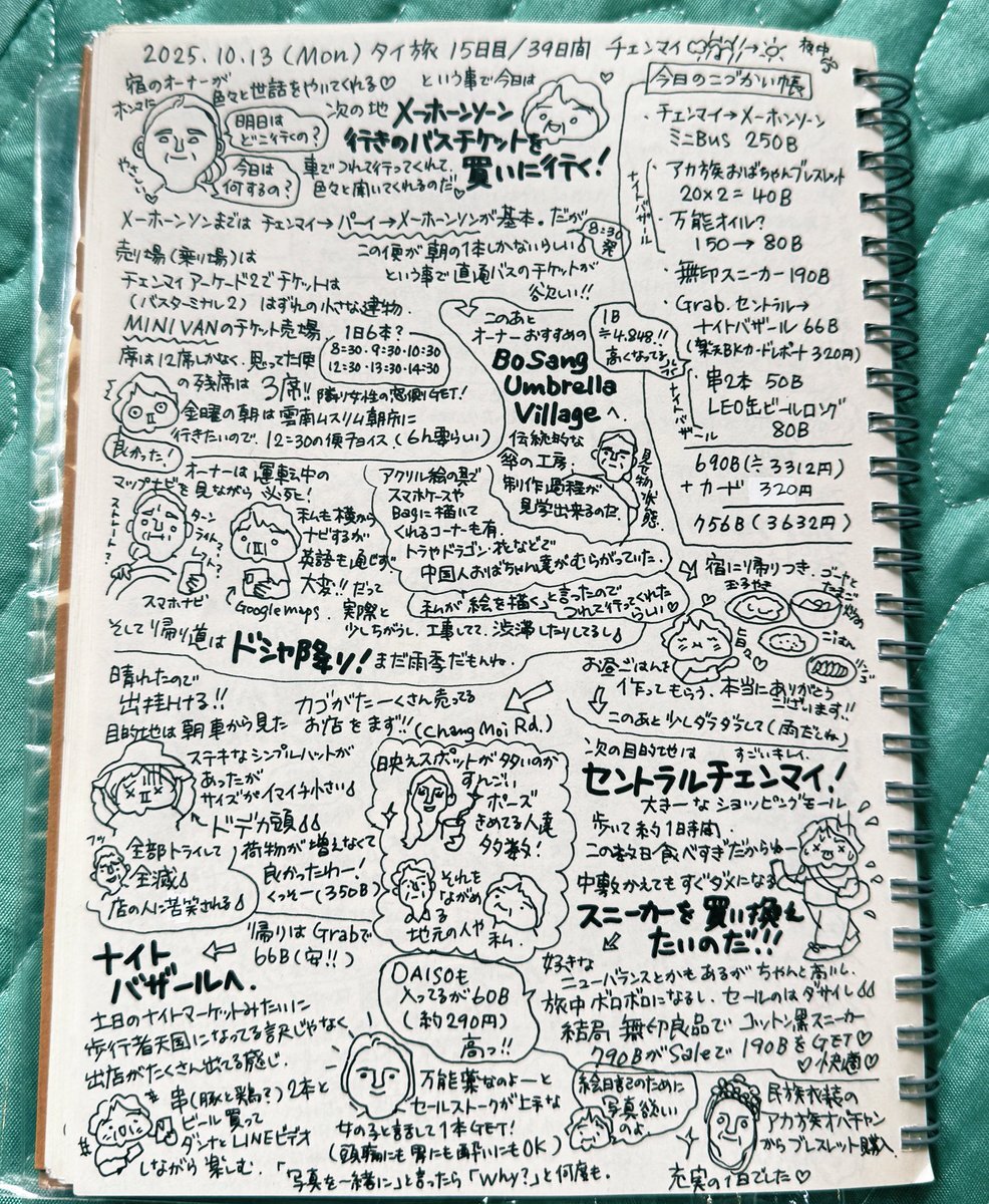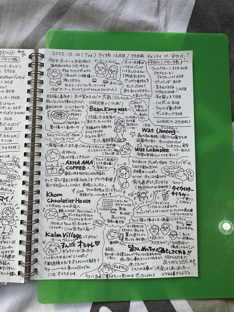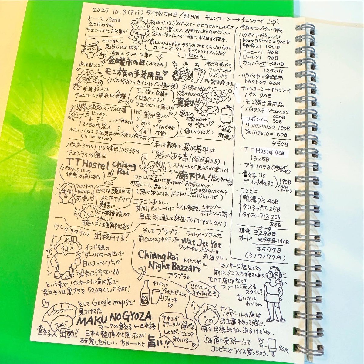 タイ旅2025旅絵日記15日目/39日間(10/13) 次の移動のチケットもゲット出来た(これがかなり神経使う)。 本当に宿のオーナーさん達いい人だぁ♡ #イラスト # #旅絵日記 #タイ #昔の旅をなぞる旅 #タイ北部 #チェンマイ #移動 #チケット予約 #セントラルチェンマイ #チェンマイナイトバザール pic.x.com/AjQO7QJZp7