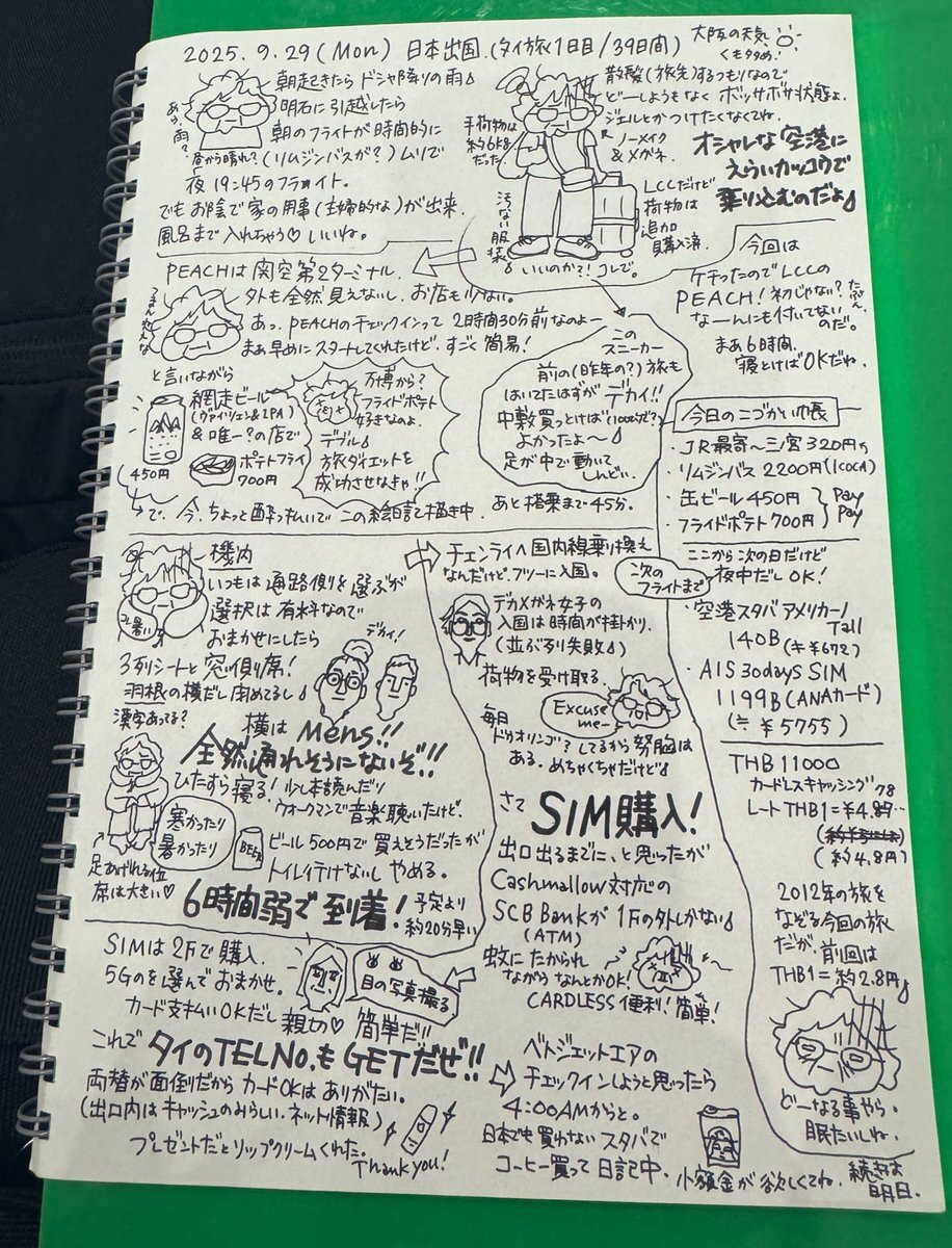 タイ旅2025旅絵日記1日目/39日間(9/29) 色々心配だった事も難なくクリア。 まぁ私の場合は念入りな下調べのおかげだと思うよ。 #イラスト #illustration # #旅絵日記 #タイ #昔の旅をなぞる旅 #タイ北部 #タイ中部 #LCC #キャッシング #cashmallow #sim #空港で買う pic.x.com/s45HVWqSMu