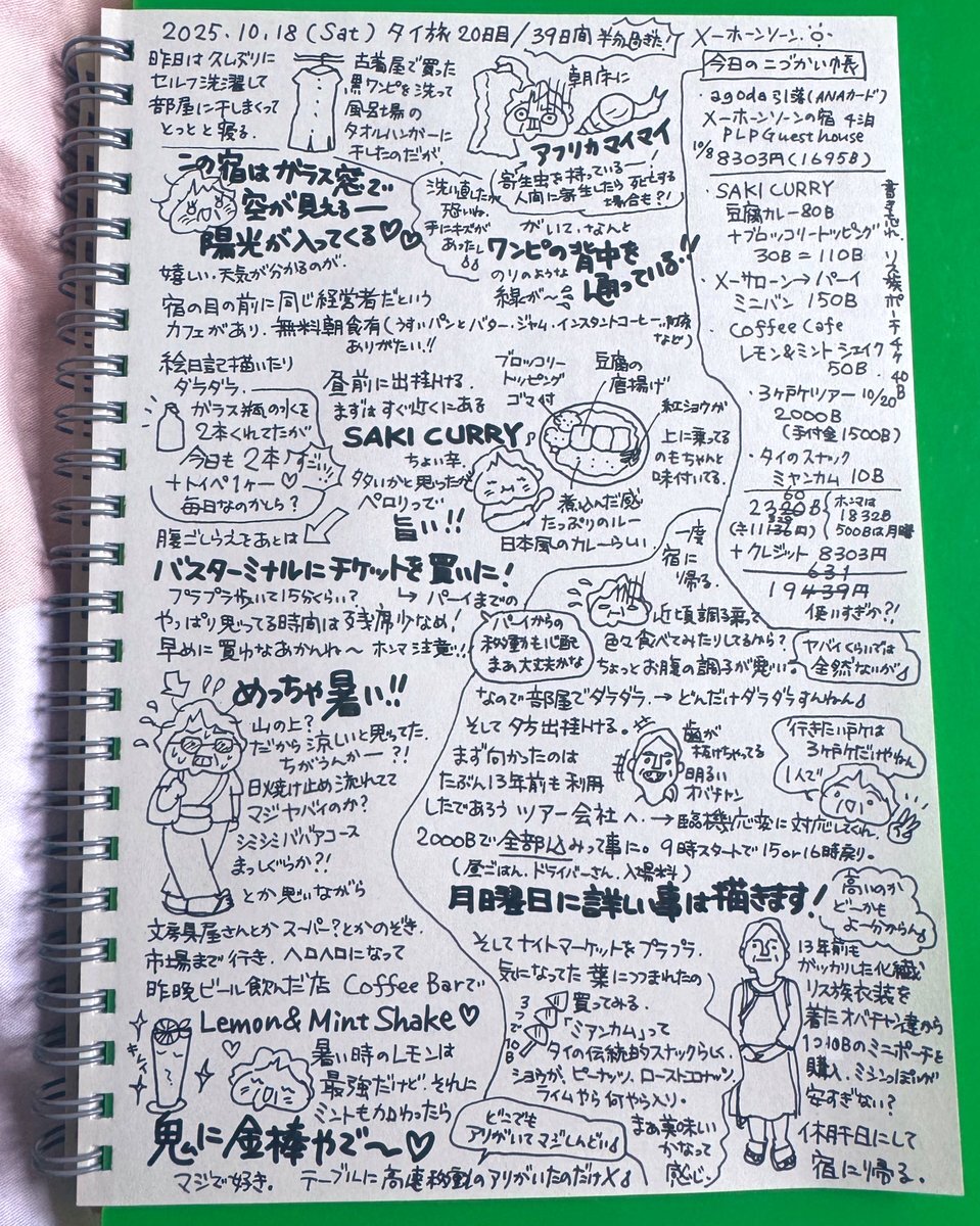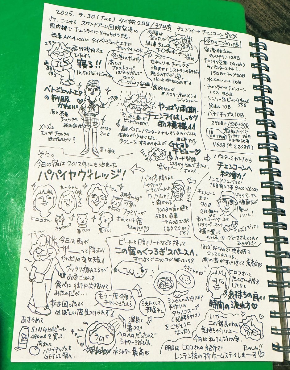 タイ旅2025旅絵日記2日目/39日間(9/30) 雨☔がすごく近く感じる。身体中で体感してる感じ? #イラスト #illustration # #旅絵日記 #タイ #昔の旅をなぞる旅 #タイ北部 #タイ中部 # #雨季 #チェンライ #チェンコーン #パパイヤヴィレッジ