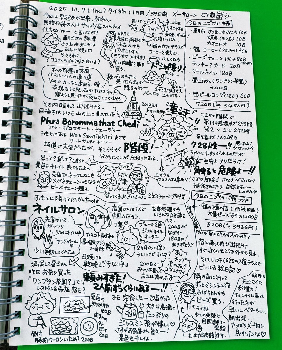 タイ旅2025旅絵日記17日目/39日間(10/15) してもらう事は本当にありがたくて感謝なんだけど、やはり自由に動きたいと思っちゃう。 ごめんなさい、贅沢だな。 #イラスト # #旅絵日記 #タイ #昔の旅をなぞる旅 #タイ北部 #チェンマイ #watphrathatdoisuthep #買い物 #刺繍 #ナイトマーケット pic.x.com/dcY4BNAmCL