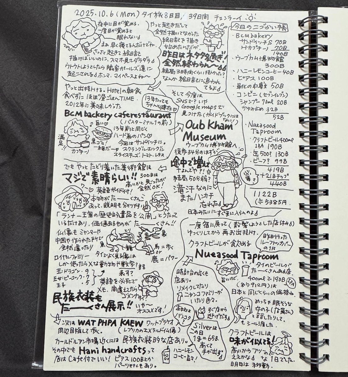 タイ旅2025旅絵日記8日目/39日間(10/6) ガイドブックに載ってない「ウーブカム博物館」見応えありですよ!ちょっと行きにくいけど。 #イラスト # #旅絵日記 #タイ #昔の旅をなぞる旅 #タイ北部 #チェンライ #民族衣装 #oubkhammuseum #handcraft #ハチミツレモンコーヒー #クラフトビール #満月 pic.x.com/BueK9fQHS6