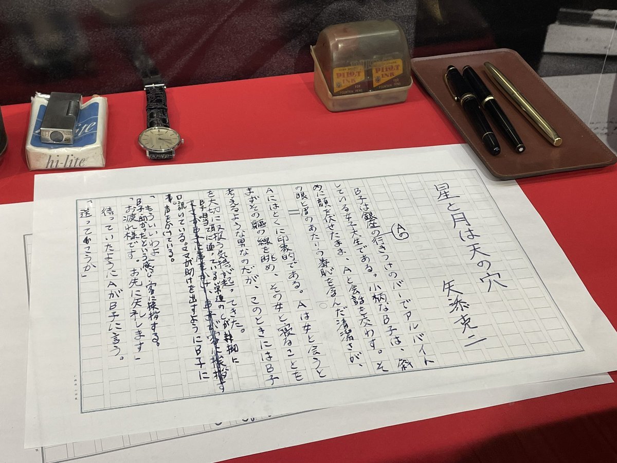 #星と月は天の穴 矢添が文章を書くシーンがありますが、 あれは剛君が本当に書いているの??? 剛君の字ってなかなか見られないから貴重 テアトル新宿での衣装展示にはその文字の展示もあります #綾野剛 pic.x.com/jQRphSXAo4
