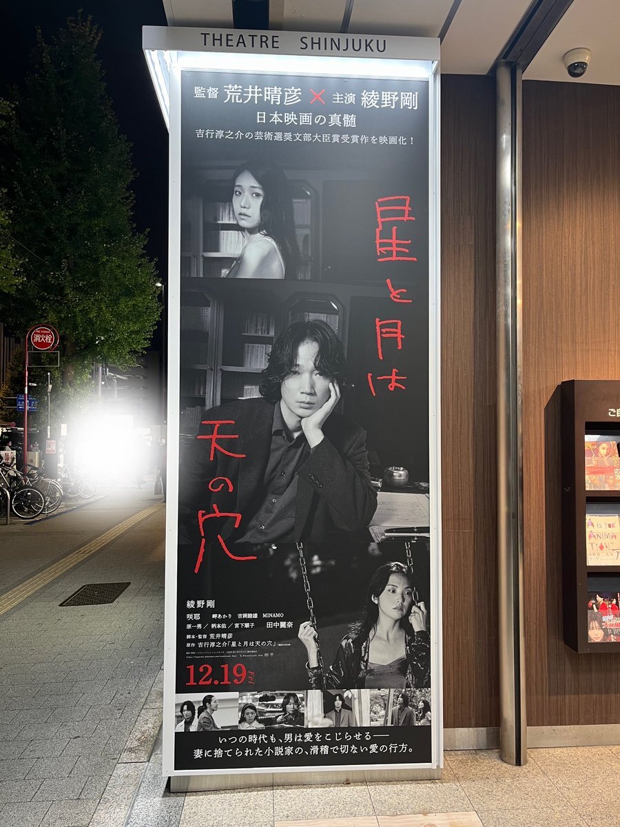 完成披露上映会で鑑賞しました。 だいぶ前に一度だけ読んだ原作のイメージがそのままでした🥹🌸 こちらの予告💀💀シ-ンも大好き♡ ♡ 映画完成おめでとうございます🎉㊗️✨ #星と月は天の穴 #荒井晴彦 #綾野剛 #吉行淳之介 pic.x.com/xKa9pNRNYa x.com/hoshitsuki_fil…
