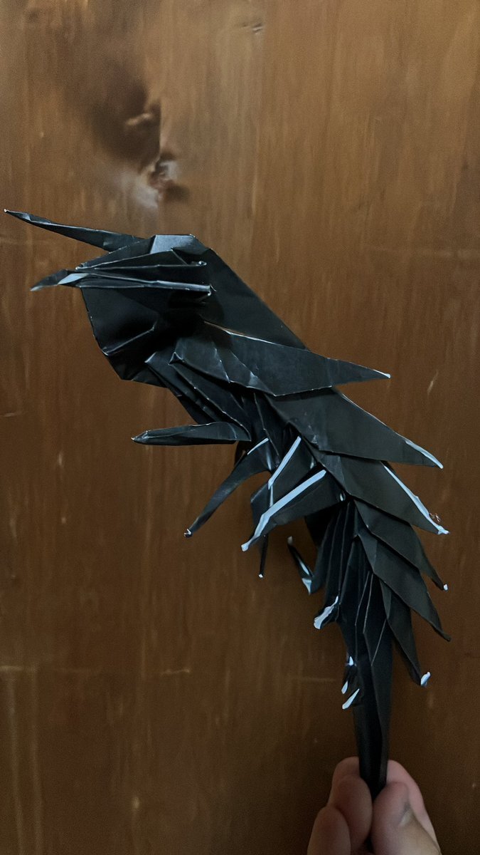 あ、期間終わってる。まあ再掲ですし。こちら折り鶴重ねただけです。折り紙有識者の方が見て、生産性か耐久性のある暗黒竜生まれないかなあと思って…。 #星の子アートフェス pic.x.com/ojW2MOuNid