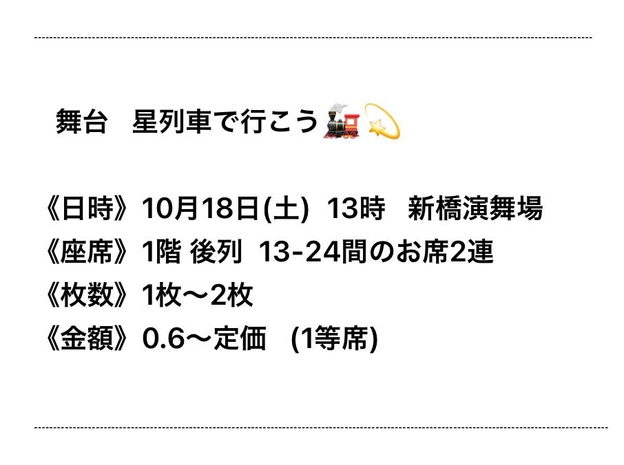 昨日は初日の星列車に乗車出来て最高でした🚂✨️影の歌声ほんとキレイで感動でした✨️ 花道横の席のだったから最後ゼロ距離でキャストの皆さん来てくれて感無量🥹 最後まで無事に走りきれますように!! がんばれー🫡🚂⸝⋆⸝⋆✨️ #星列車で行こう #影山拓也 pic.x.com/o3WBIjOcuc