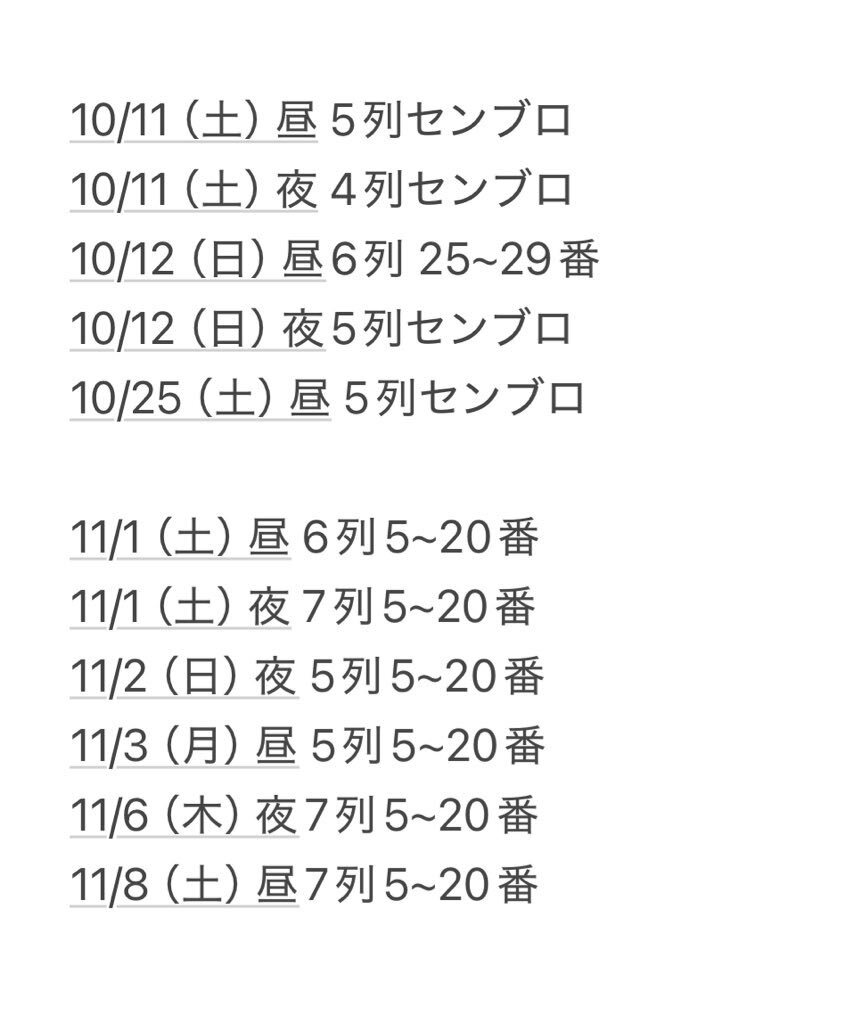 星列車で行こう 東京 新橋演舞場 交換お願いいたします。 【譲】 10/11夜 1階9列7〜12番 10/16夜 1階5列15〜25番 10/26 1階8列15〜25番 【求】10/16 10/25夜 同等席 1枚同士 列上がり上乗せ可能 必要事項明記の上DMよりご連絡お願いいたします #IMP交換 #星列車で行こう交換