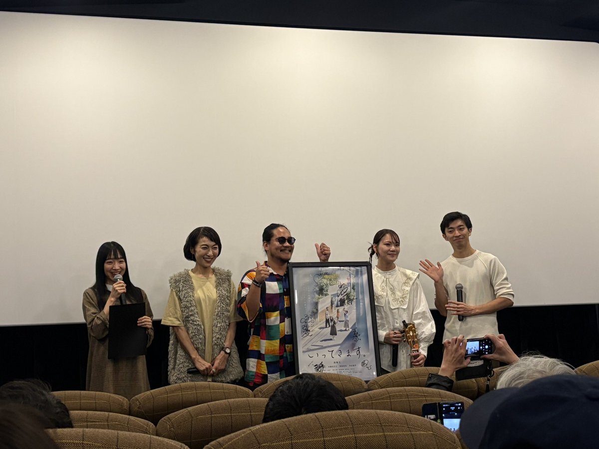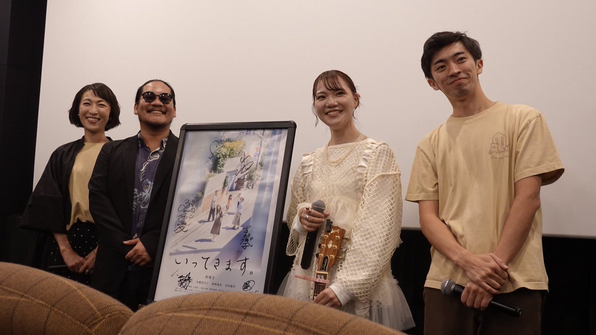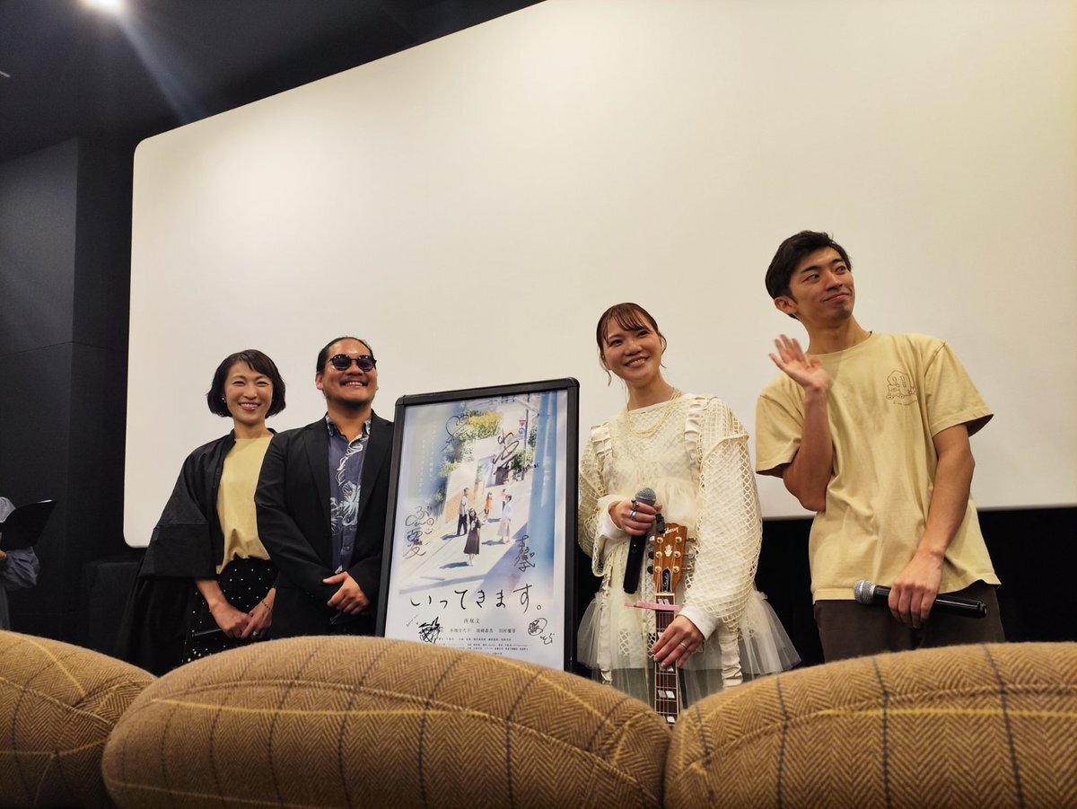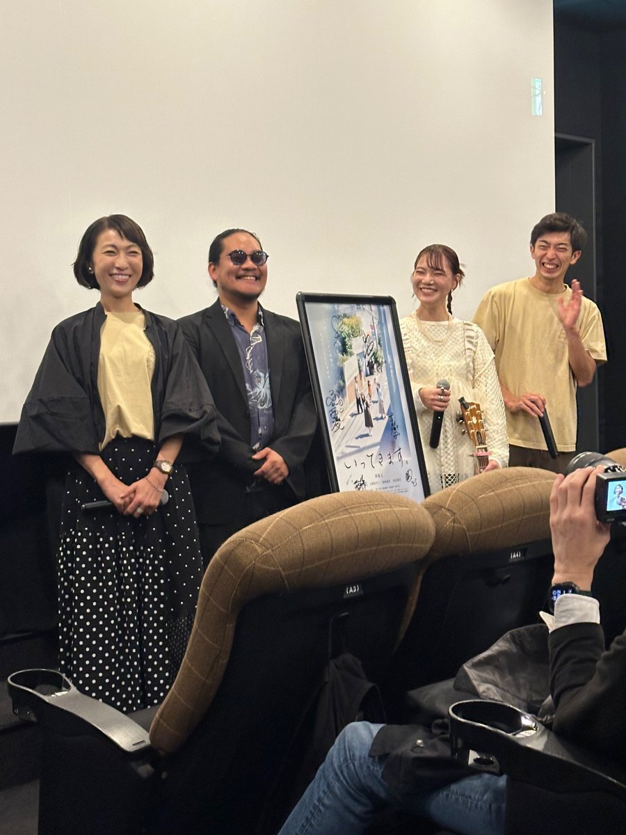 上映後は舞台挨拶。小池匠監督、伊藤汐梨さん、本橋佳代子さん、西岡空良さんが登壇。MCは樋口佑奈さん。トークと伊藤さんのアコースティックライブ。書き下ろしだから溢れる想いがあって。上映中は我慢してた涙が歌声で決壊。あの美しい声には優しい温もりがあった。良き時間。 #いってきます。