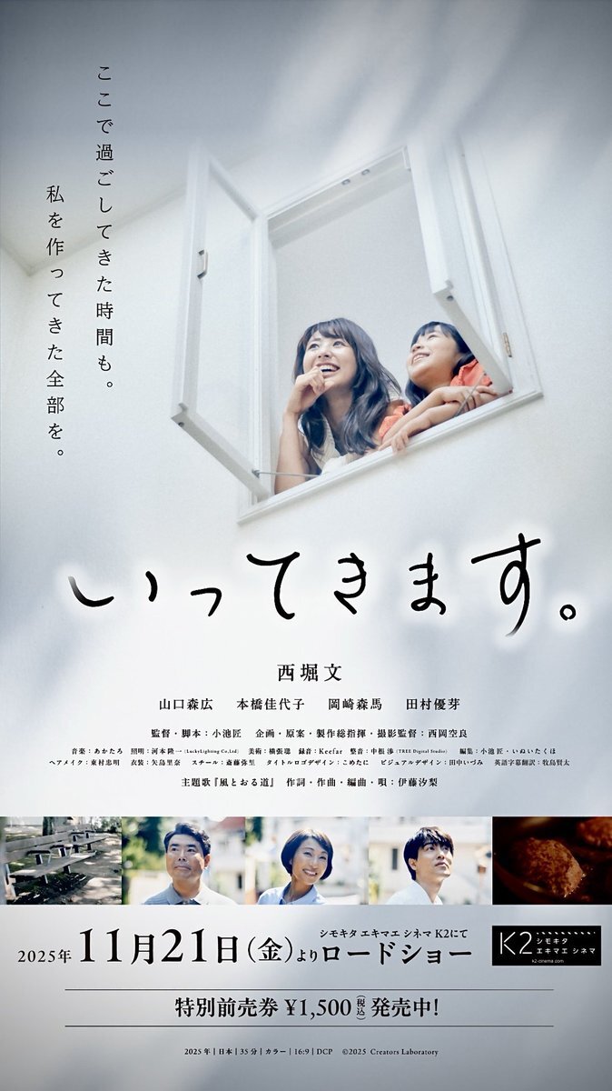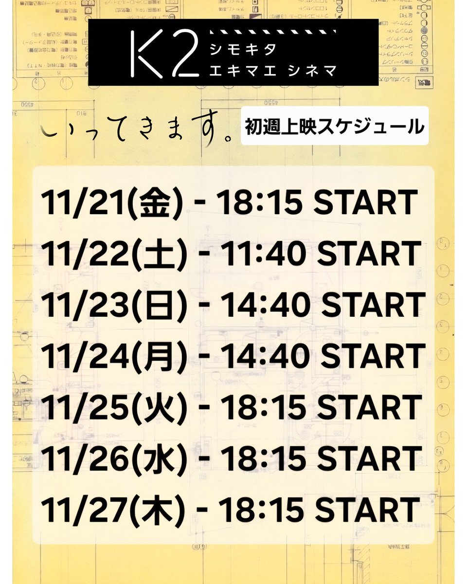 劇場公開まで、あと‼️2️⃣日‼️ Road to シモキタ-エキマエ-シネマ「K2」@k2cinema 🎫チケットはこちらから購入☝️🎫 k2-cinema.com/event/title/604 ✎𓂃𓂃𓂃𓂃𓂃𓂃𓂃𓂃𓂃𓂃𓂃𓂃𓂃𓂃𓂃𓂃 🎬映画『いってきます。』 🗓️上映スケジュール📅   11/21(金) - 18:15 START 11/22(土) - 11:40 START 11/23(日) -