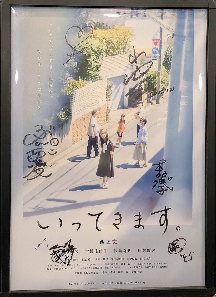 『#いってきます。』 「息子がプロデュース&撮影した映画が、劇場公開されます」という案内を高校の友人からいただき、初日(11/21)に鑑賞。 息子さんは、#西岡空良 さん✨️ 実際に実家を取り壊すという話しから、これをなんとか映像に残したいと。 共感できることが多々あり、優しい、温かい映画💕
