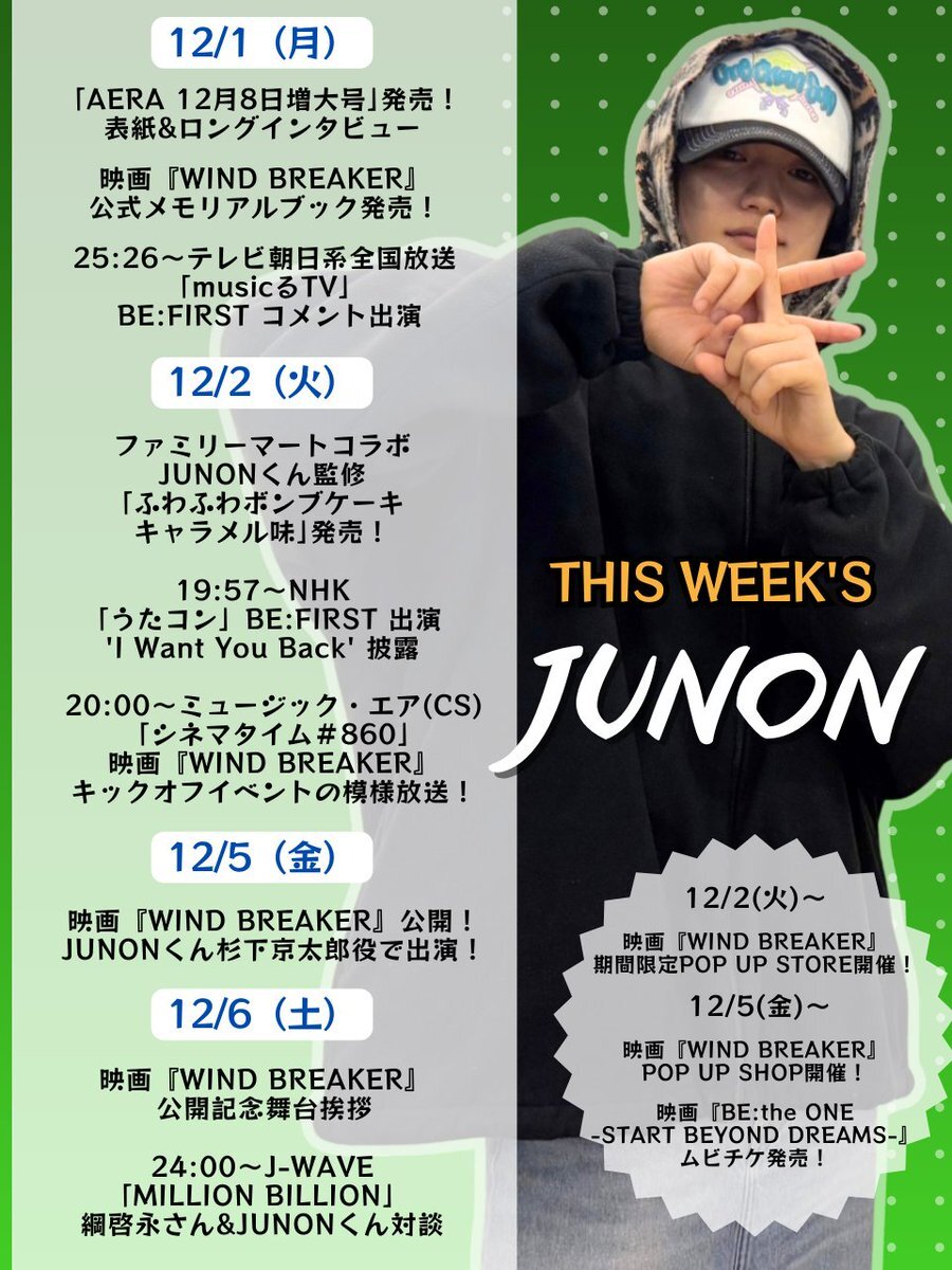 🐢▶▶ THIS WEEK'S JUNON ◀◀ いよいよ12/5に #映画ウィンブレ が公開されます!今週もHAPPYな予定がいっぱいです💙JUNONくんに愛と感謝を込めて🫶 12/1(月) 📖 「AERA 12月8日増大号」発売! 表紙&ロングインタビュー @AERAnetjp 🔗publications.asahi.com/category/magaz… 📖映画『WIND pic.x.com/GOsSv70dzQ