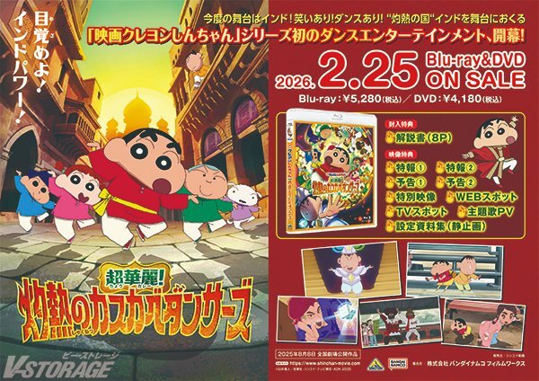 シリーズ最新作! “灼熱の国“インドを舞台におくる 『#映画クレヨンしんちゃん 超華麗!#灼熱のカスカベダンサーズ』 Blu-ray&DVD 2026年2月25日発売決定🔥 v-storage.jp/anime/shinchan… 購入特典・対象店舗はこちら👇 v-storage.jp/anime/261111/ pic.x.com/hvjw19pV4B