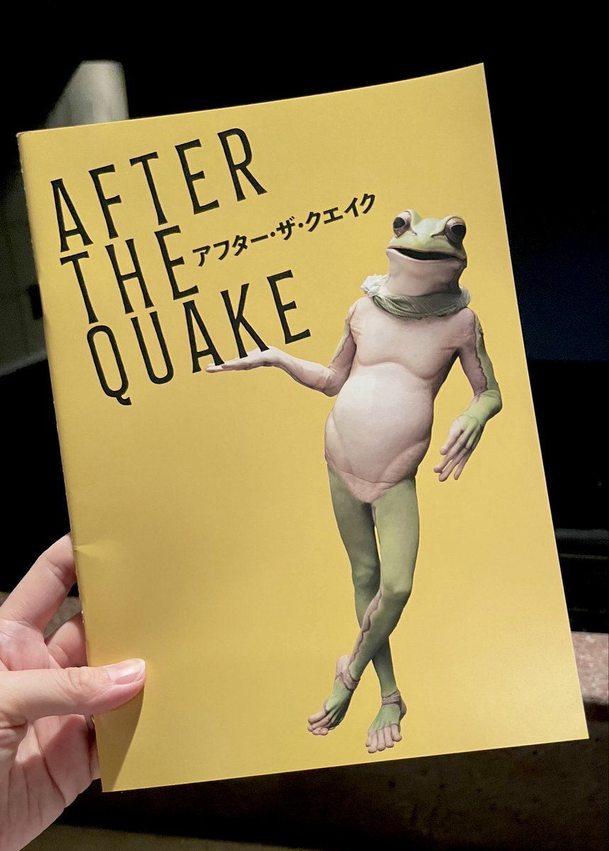 #アフター・ザ・クエイク』 監督:#井上剛 デザイン:#岡野登 (#サイファ。) かえるくんのインパクト大!! 🐸 ロゴのフォントに絶妙な不穏さがあって好きです。 #映画パンフは宇宙だ #映画パンフレット pic.x.com/DTVGTcnGz4