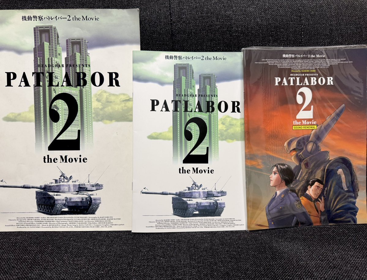 #機動警察パトレイバー2themovie』 監督:#押井守 左から公開当時、復刻版、サウンドリニューアル版です。こうして見ると公開当時版の大きさが際立ちますね! #映画パンフは宇宙だ #映画パンフレット pic.x.com/MAlbCCiLCg