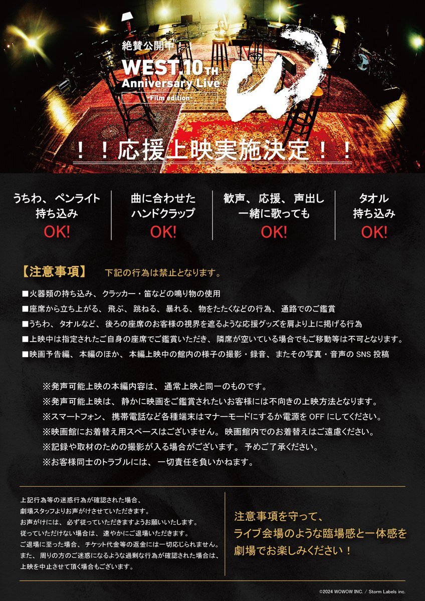 『WESTꓸ 10th Anniversary Live "W" -Film edition-』 本日より 《応援上映》&《入プレ第2弾配布》スタート📣 ✅応援上映の実施劇場はこちら wowow.co.jp/film/west/thea… ✅入プレ第2弾の詳細はこちら news.wowow.co.jp/2052.html #映画版WESTꓸ も上映2週目に突入! まだまだ盛り上げていきましょう🌈 pic.x.com/EexPLdiwML