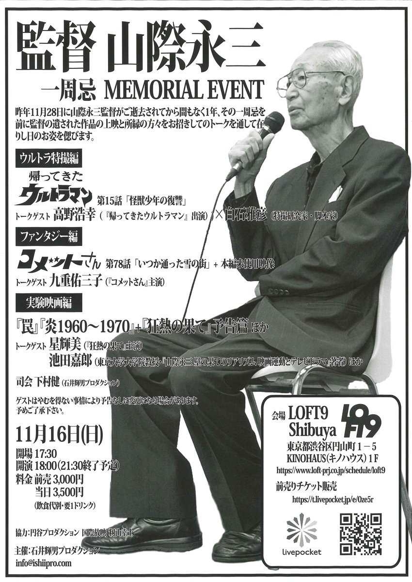 長年協会の全線で活躍してくださいました故・山際永三監督の一周忌にあわせた追悼イベントが、11月16日に開催されます。 詳細や前売りチケットに関する情報は t.livepocket.jp/e/0ze5r 上記のURLからご確認ください。 皆様のご参加をお待ちしております。 #山際永三 #映画監督 #日本映画監督協会 pic.x.com/Tgi8Y9xjPL