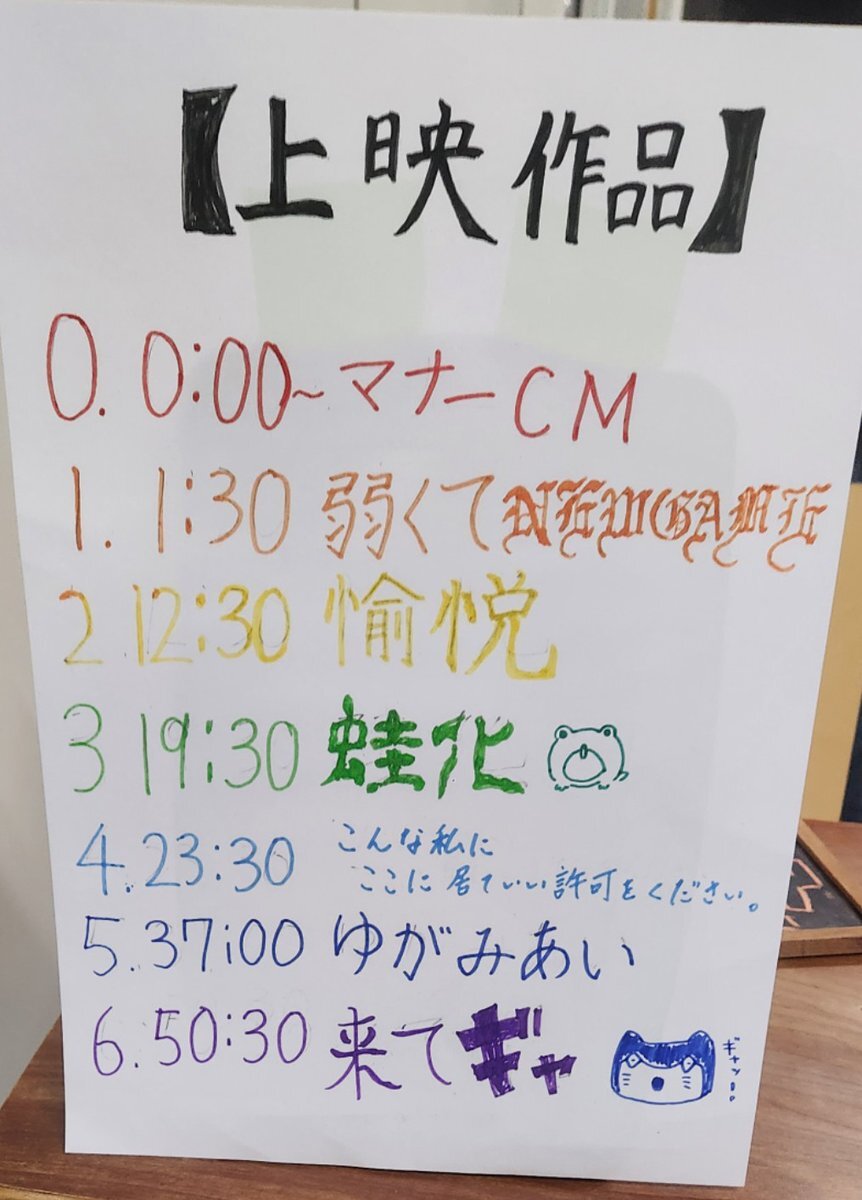 🌸桜麗祭2日目🌸 本日も 10時から3407教室 にて、自主制作映画を上映します! ⏰上映は10時から1時間ごとに実施。 🎬1時間ほどで複数の映像作品をご覧いただけます。 1作品あたり約10〜15分で、途中入退室もOKです! お気軽にお立ち寄りください☺️ #桜麗祭 #自主映画 #上映 #映画研究会 #日大文理 pic.x.com/owbjywoi5C