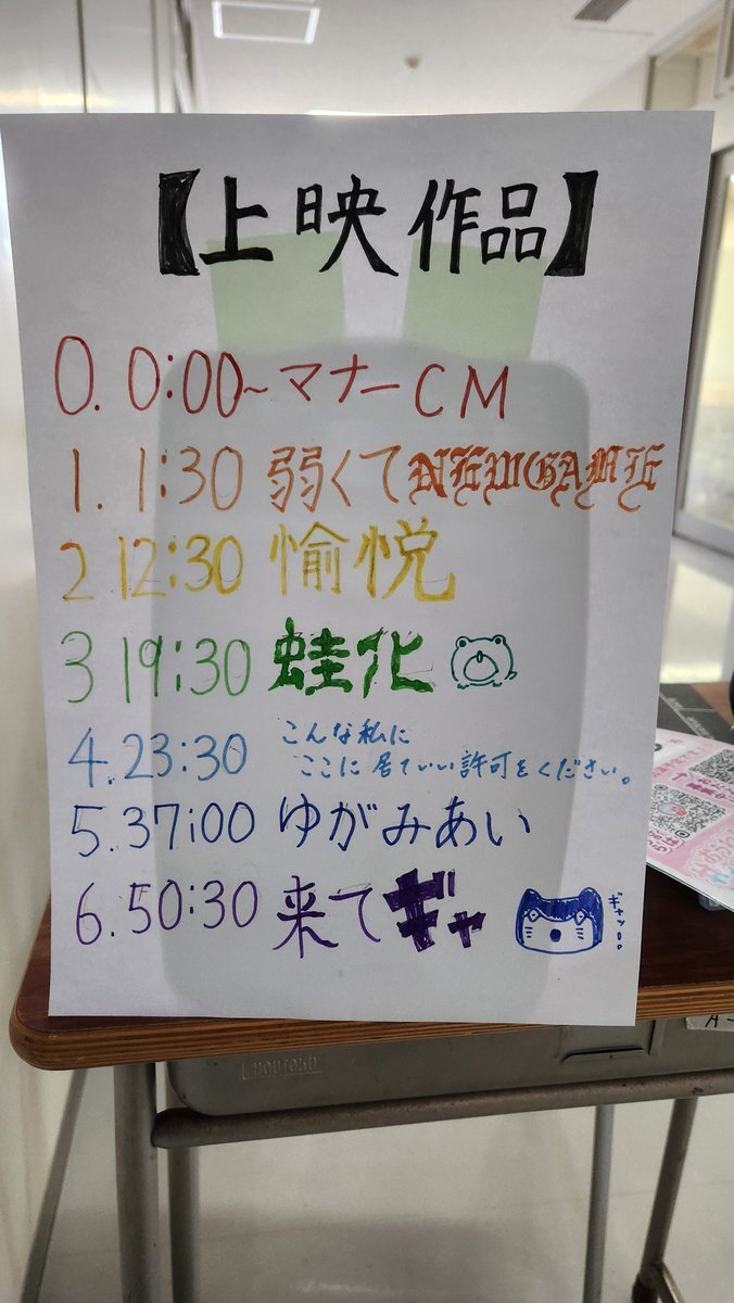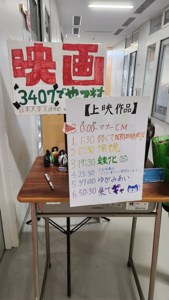 🌸桜麗祭1日目🌸 10時から3407教室で、自主映画を上映します!1時間ほどで複数の映画を上映します。10時から1時間ごとに上映しています🎬 #桜麗祭 #来てギャ #映研 #自主映画 #上映 #映画研究会 pic.x.com/NDwYCr7DIR
