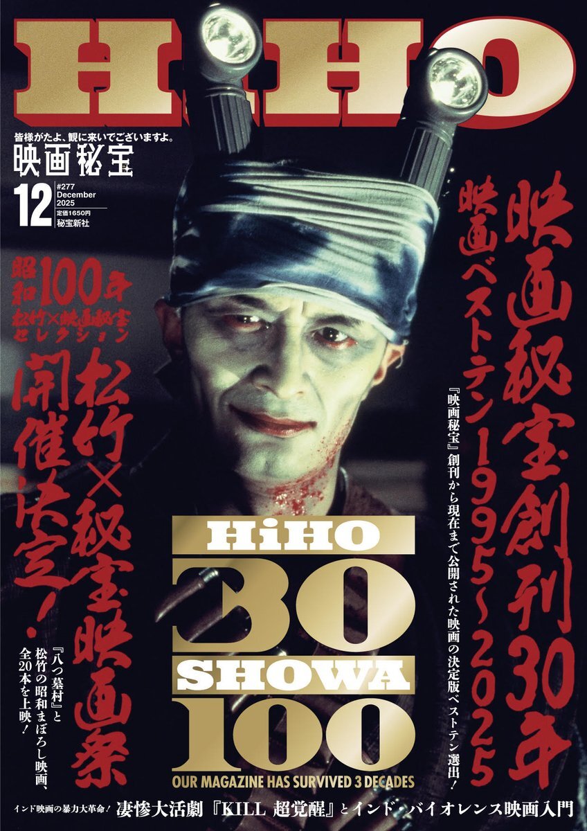 本日(10月21日)発売の映画秘宝は創刊30年。おめでとございます。自分もフリーライターになって30年、映画ベストテン1995~2025に参加させていただきました。書店でぜひチェックしてください。にこやかに微笑む山﨑努さんが目標です。#映画秘宝 pic.x.com/GOnXMLRG2v