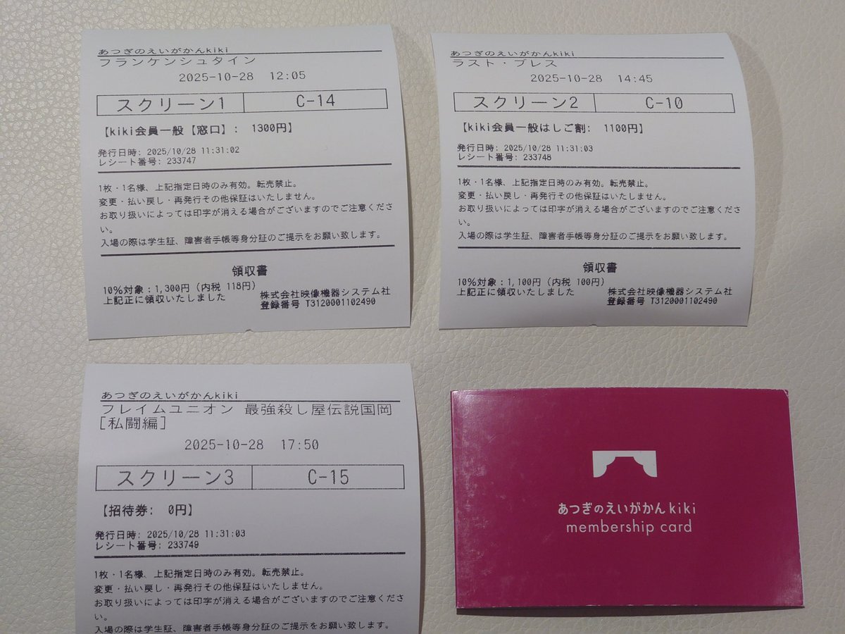 #あつぎのえいがかんkiki で 火曜日はスタンプ2倍なので #フランケンシュタイン #ラスト・ブレス #フレイムユニオン 最強殺し屋伝説国岡[私闘編] を観てくる! #映画館に行こう #映画館は誰もが幸せになれる場所 #映画の素晴らしさを全ての人に pic.x.com/ZukQtfLzZg